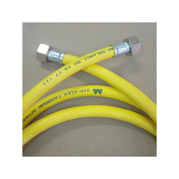 Шланг изготавливается из трех слоев, внешний слой желтого цвета выполнен из термостабильного поливинилхлорида, внутренний слой из поливинилхлорида устойчивого к газовой среде, с армированием полиэфирной нитью. Характеристики подводки для газа: -Шланг рассчитан на подачу под давлением городского газа, ацетилена, пропана и бутана от трубопровода или баллона до источника потребления;-Внутренний слой рукава: ПВХ, черного цвета;-Наружный слой: ПВХ, желтого цвета;-Армирование полиэфирной нитью;-Рабочее давление до 3 Бар;-Давление на разрыв не менее 50 Бар;-Диапазон рабочих температур: от -20 до +80 °С;-Термостабильность (термостойкость) не менее 120 °С;-Соединение 3/4: Внутренний диаметр 13мм/Внешний диаметр 19 мм/Проходной диаметр штуцера 10мм.