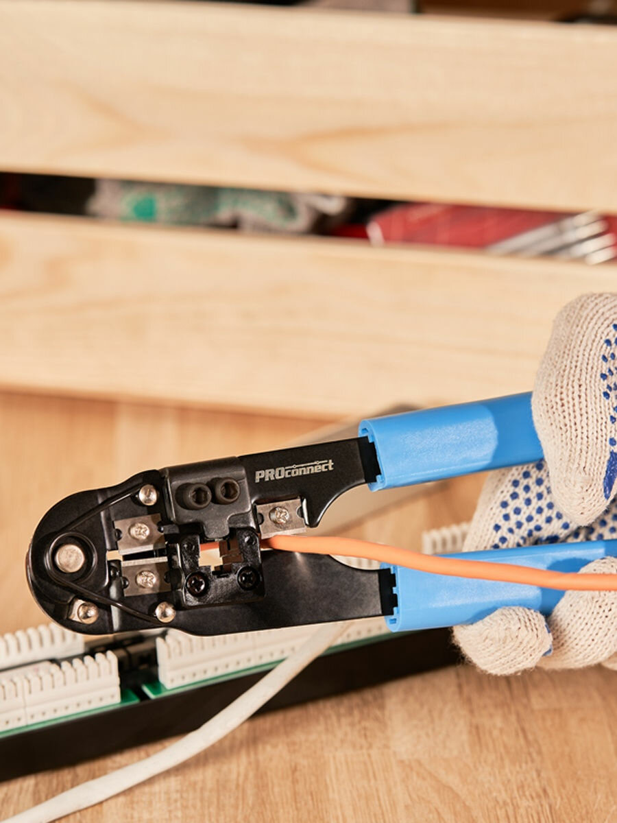 Кримпер PROconnect HT-210N — универсальный инструмент для обжима разъемов RJ-45 (8P8C), а также для снятия изоляции и обрезки проводов.