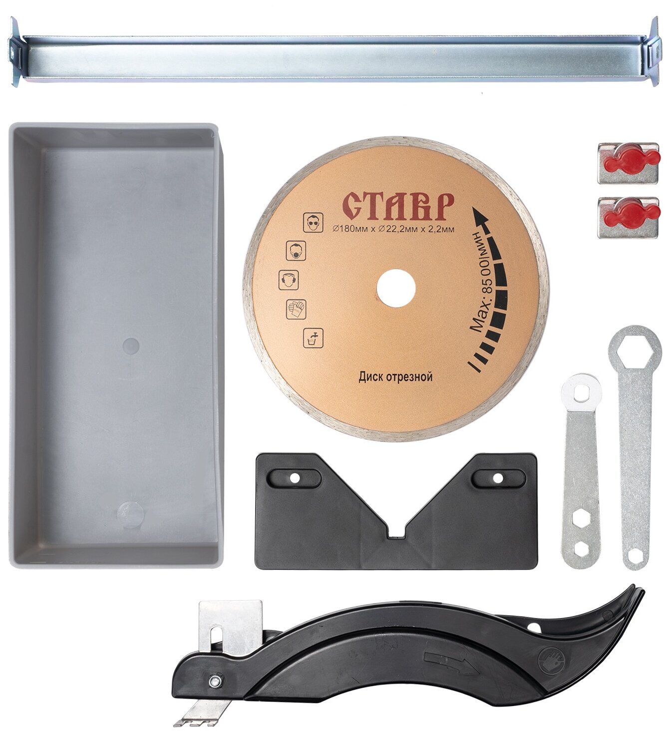 | Комплектация | диск отрезной, ключ 2 шт., защитный кожух, лоток для воды, параллельный упор |