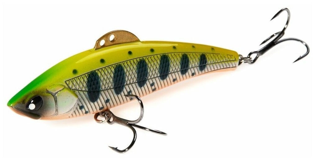 Тонущий воблер для ловли крупной хищной рыбы. При взмахе воблер вибрирует, при свободном падении - планирует, привлекая хищника с большого расстояния. В спинном плавнике приманки имеется два отверстия. В зависимости от места установки застежки - игра приманки будет несколько отличаться.