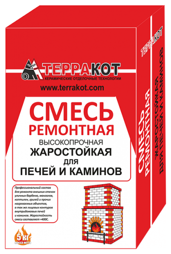 Смесь ремонтная жаростойкая для печей и каминов Терракот применяется при проведении ремонтных работ на нагреваемых объектах (печи домовые, камины, печи-барбекю, мангальные комплексы) для заделки мелких трещин, неровностей, раковин, выбоин в кирпиче и кладочном шве, восстановления фрагментов лицевой кладки.