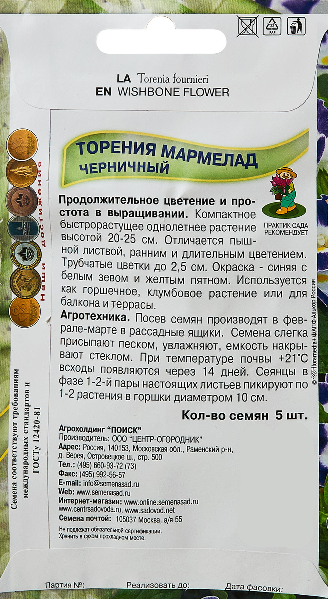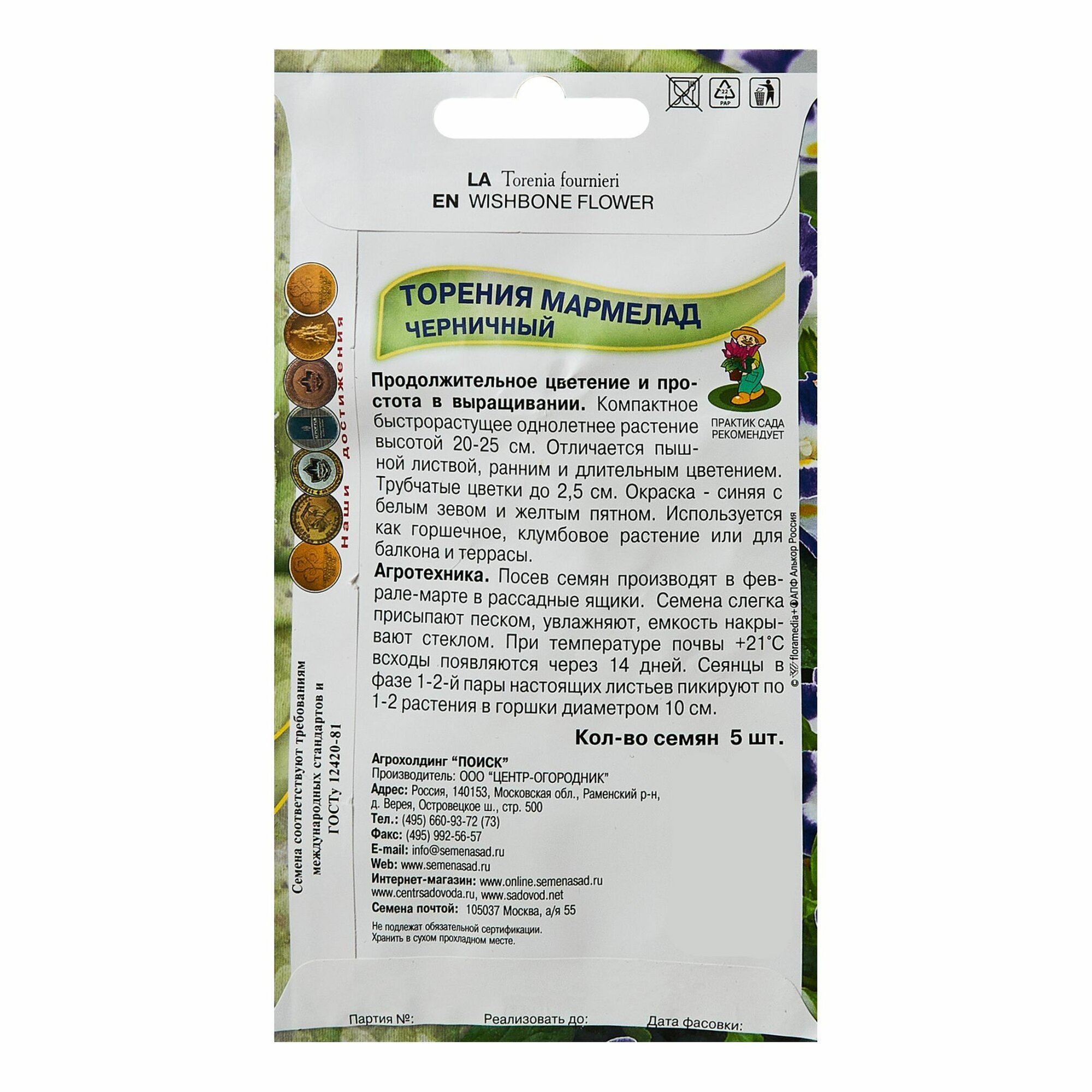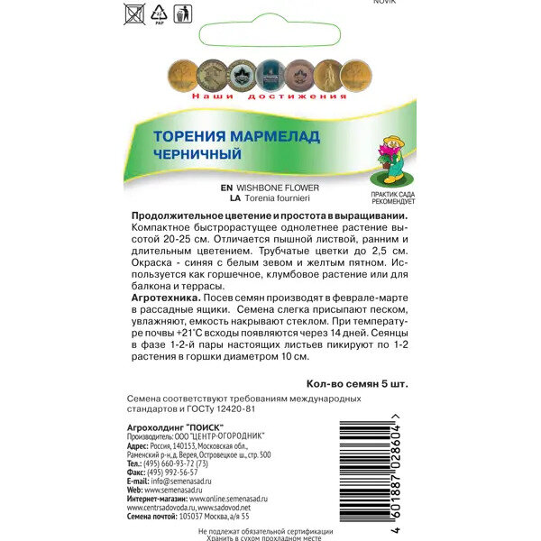 Семена торения мармелад черничный 5 шт Без бренда