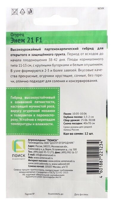 На сегодняшний день товар «Семена огурец энеж 21 F1 12 шт Без бренда» можно купить с кешбеком в 1 магазине: Яндекс.Маркет