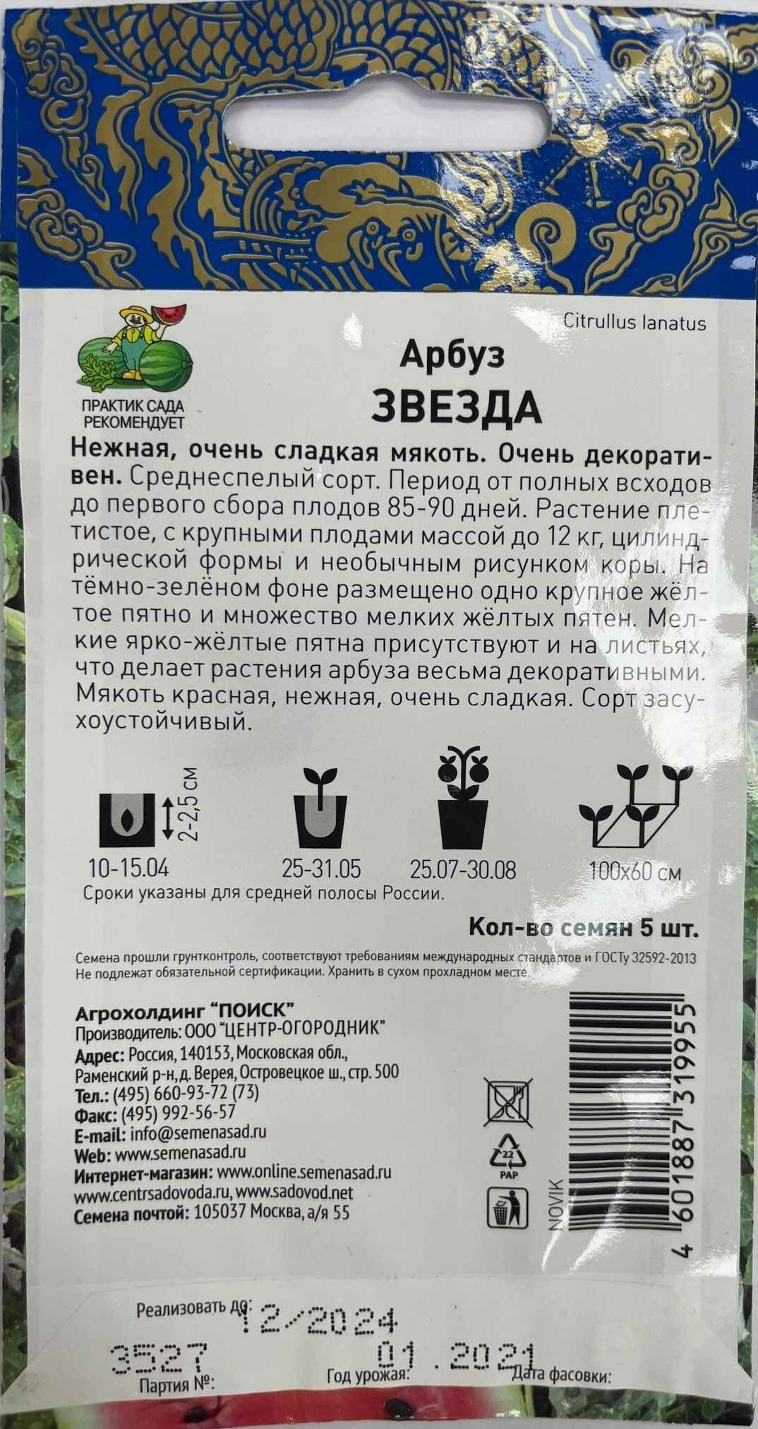 Семена арбуз звезда 5 шт Без бренда