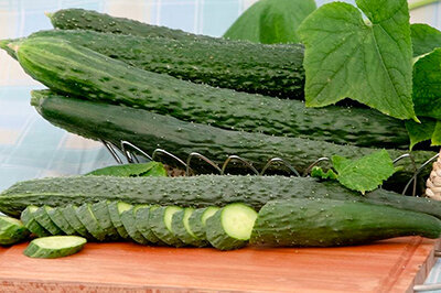 Покупаю семена огурцов "Восточный экспресс " для теплицы. В упаковке 5 семян и все всходят. Сажаю их рассадой в стаканчики. Вкусовые качества отличные. Урожайность богатая. Едим всей семьёй, родственникам раздаём, ещё и соседям хватает. Плодоносят до первых заморозков.