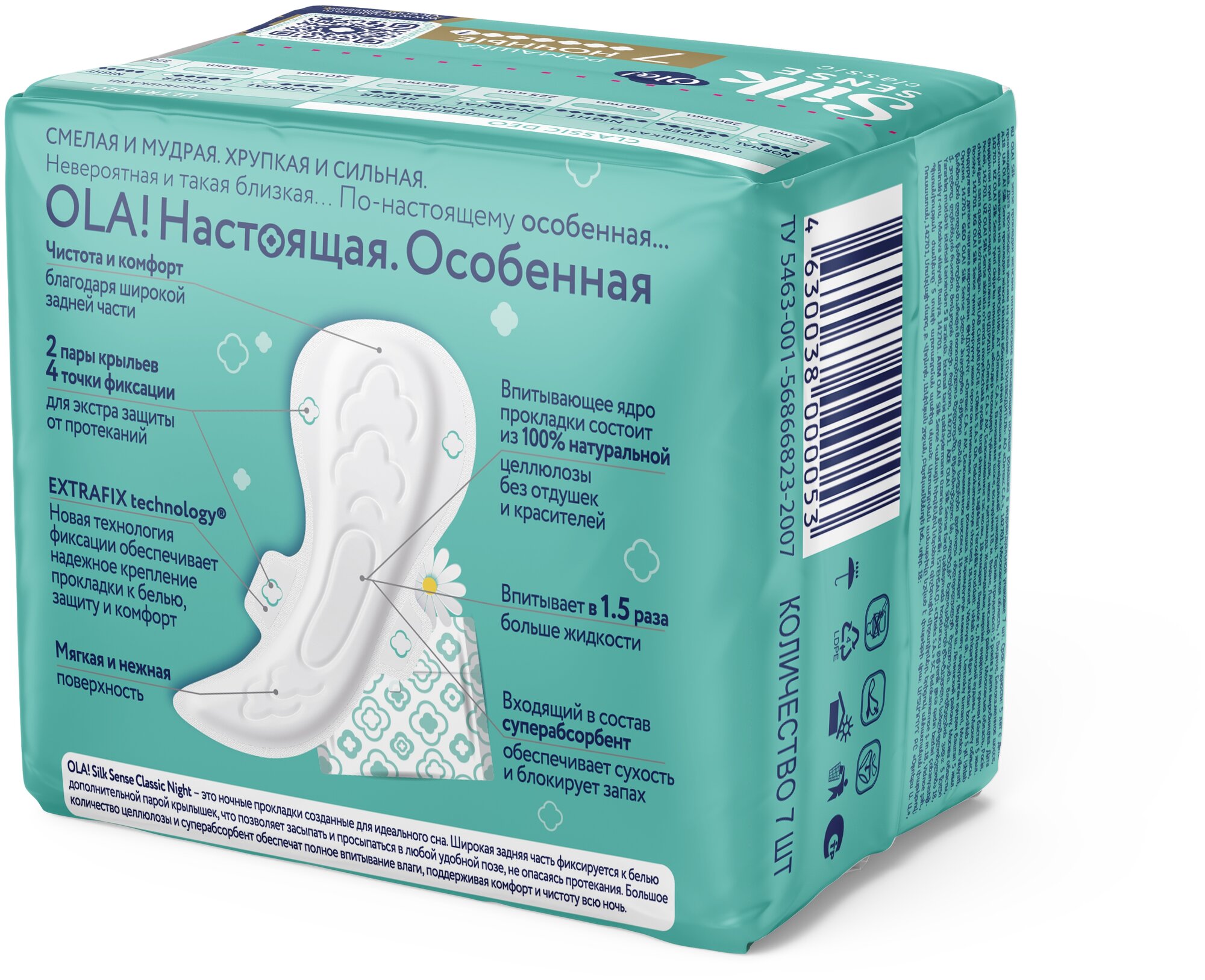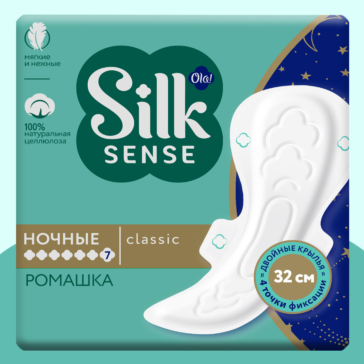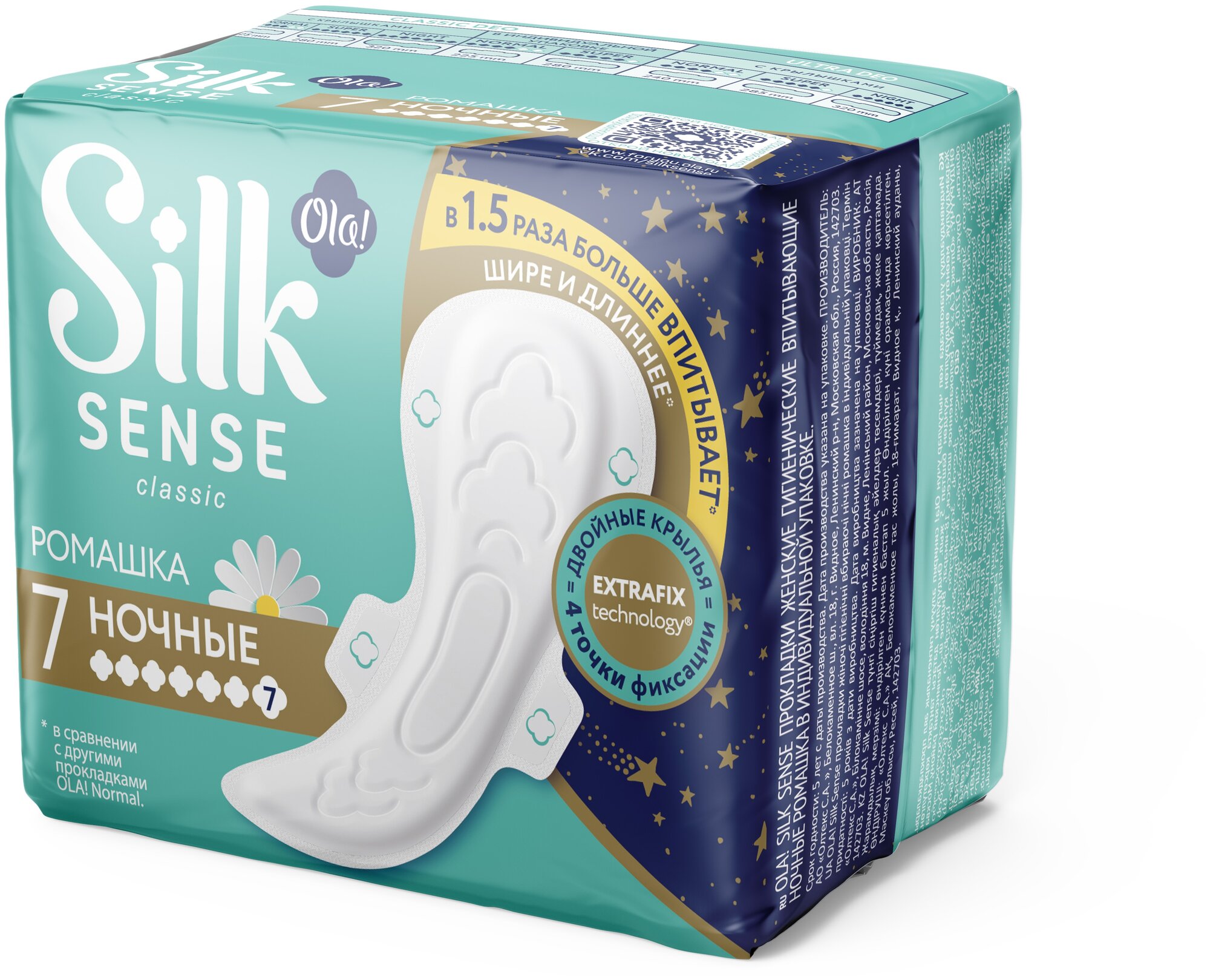 | Полное наименование | Прокладки гигиенические Ola! Silk Sense Classic Wings Singles Night с ромашкой 7 шт. |
