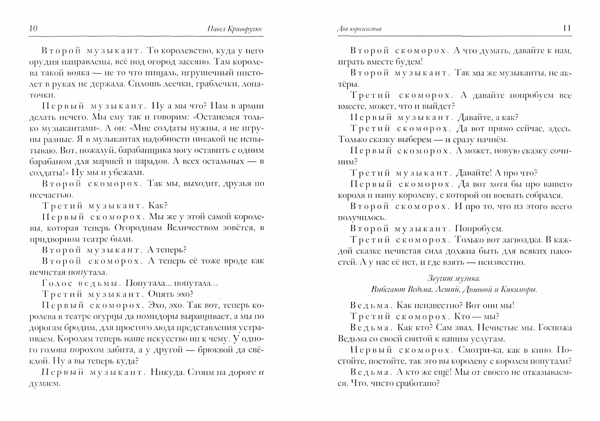 В книгу вошли три музыкальные пьесы-сказки и сборник стихотворений "У лесного порога". Пьеса "Два королевства" рассказывает о том, как злая ведьма заколдовала бравого короля Фельдфебелиуса и хлебосольную королеву Редиску. И как влюблённые принц и принцесса смогли победить чары злой ведьмы.