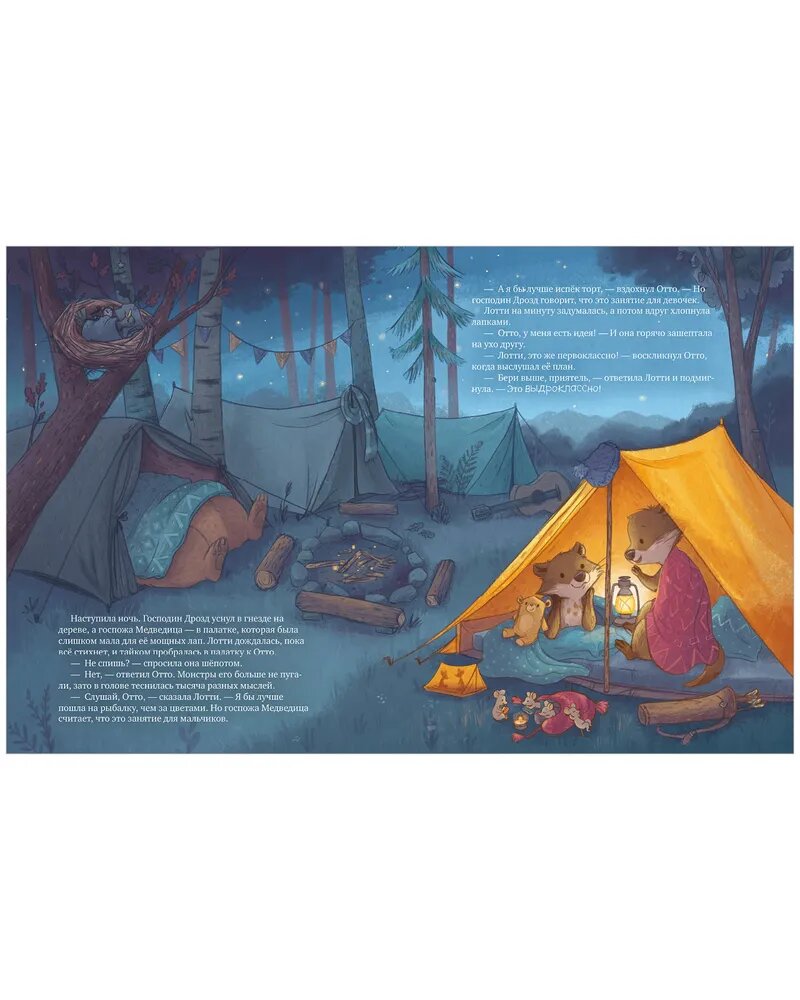Когда Лотти и Отто встречаются в летнем лагере, они с удивлением обнаруживают, что похожи как две капли воды! Но Лотти - девочка, а Отто - мальчик. Лотти любит рыбачить и строить хижины, а Отто - печь торты и шить. Вожатым в лагере не очень по душе их увлечения… Что же придумают Лотти и Отто? Серия книг про озорных выдрят Лотти и Отто научит вашего ребёнка отстаивать своё мнение, слушать сердце, делать выбор и принимать решения.