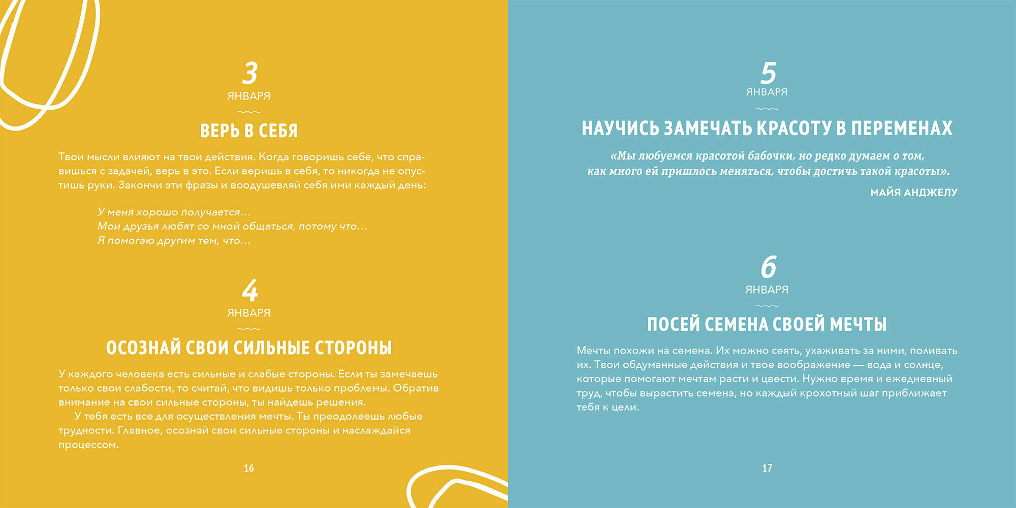 Цитаты и аффирмации - основа позитивной психологии. С этой книгой подросток будет получать небольшую дозу мотивации, счастья и оптимизма каждый день наступающего года.