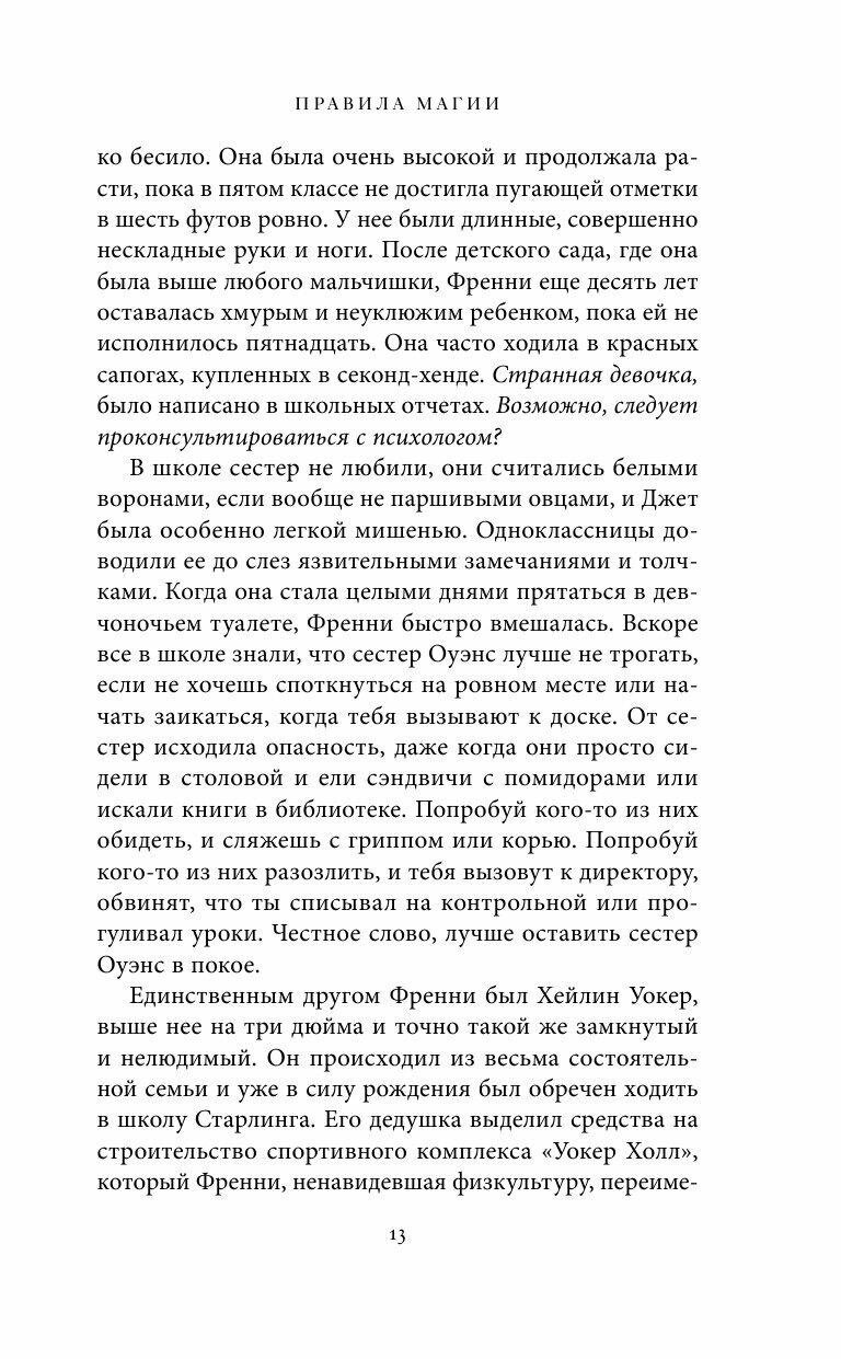 По правде говоря, я не ожидала, что сага о женщинах семьи Оуэнс так тепло отзовется в моем сердце. И даже любовная линия окажется такой качественной. Здесь речь пойдет о сестрах Френни и Джетт, которые живут в 60-е годы 20-го века. По прежнему балом правит проклятие Оуэнсов, которое причиняет девушкам боль и страдание. Мне показалось, что большую проблему представляет не проклятие как таковое, а мать семейства, которая была слишком строга к своим детям. Советую к прочтению, достойная книга!