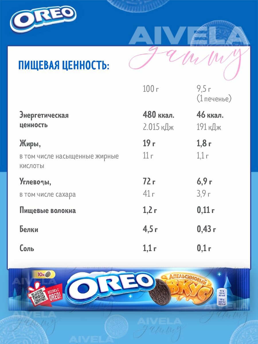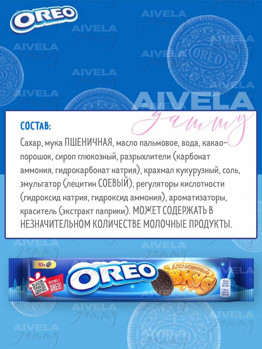 Печенье "OREO" с какао и начинкой со вкусом апельсина. Прекрасный подарок для близких или себя: на Новый год, День Рождения или любой другой праздник. Порадуйте семью и друзей!