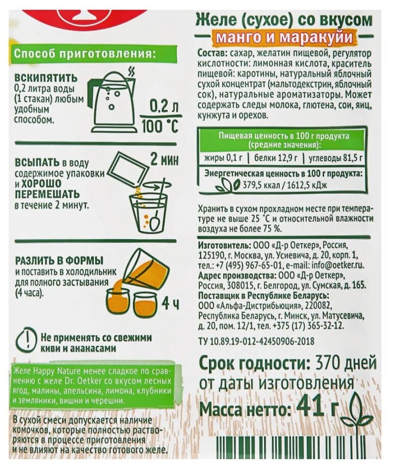 Желе сухое Dr. Oetker Манго-маракуйя 41г Д-р Оеткер ЗАО
