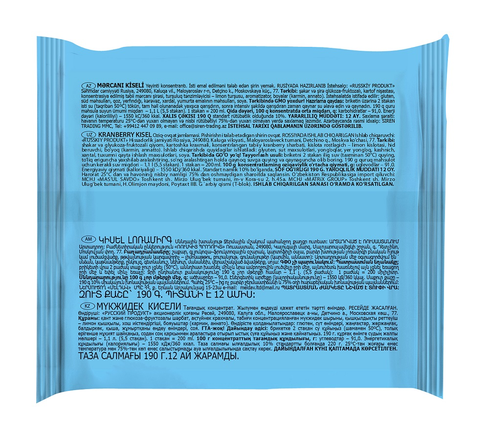 Брикетированные кисели - традиционный формат, полюбившийся многим еще с советского времени. Их удобно готовить дома, на даче и в походе. Кисель "Русский Продукт" содержит натуральный сок. Без искусственных красителей.