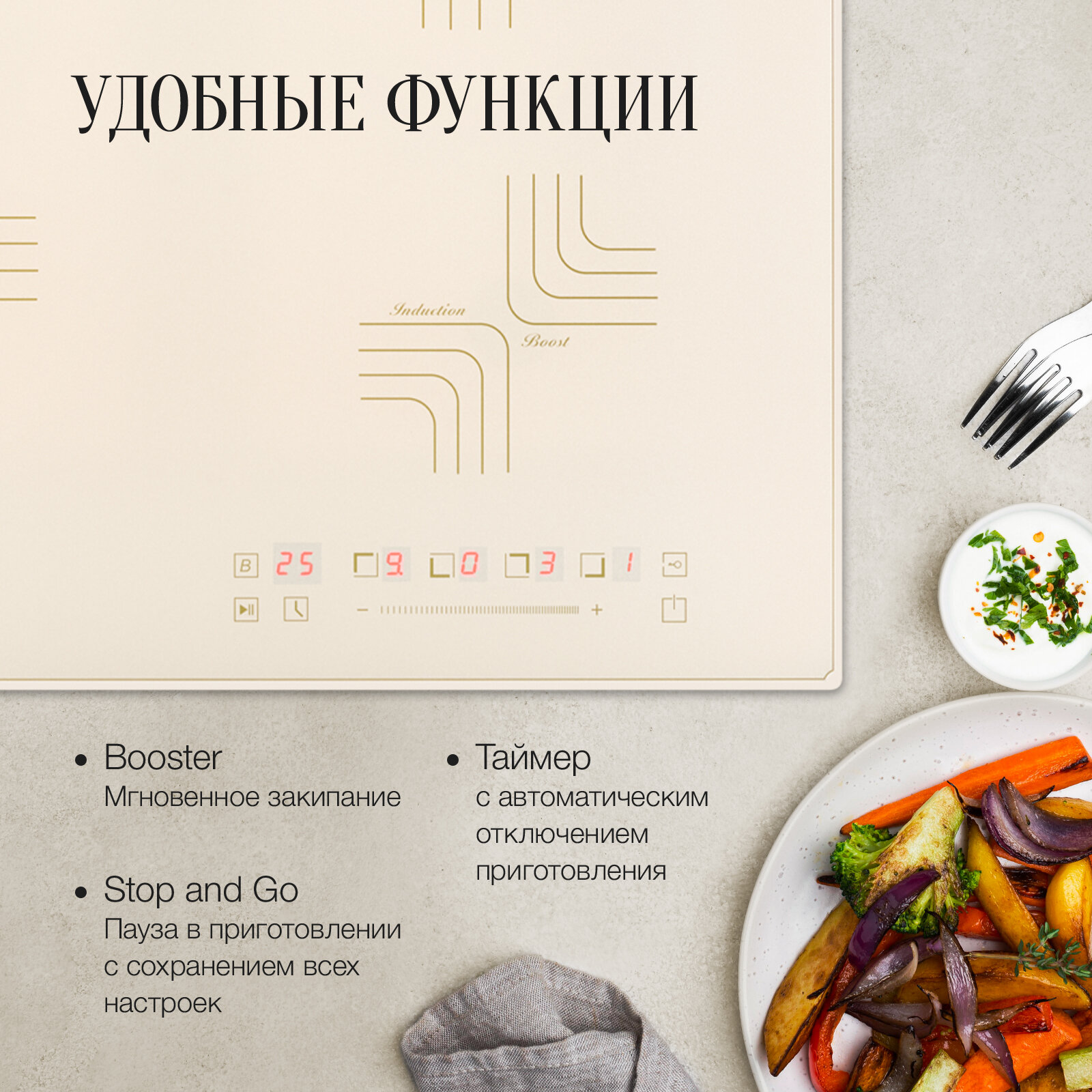 | Тип конфорок | индукционные |