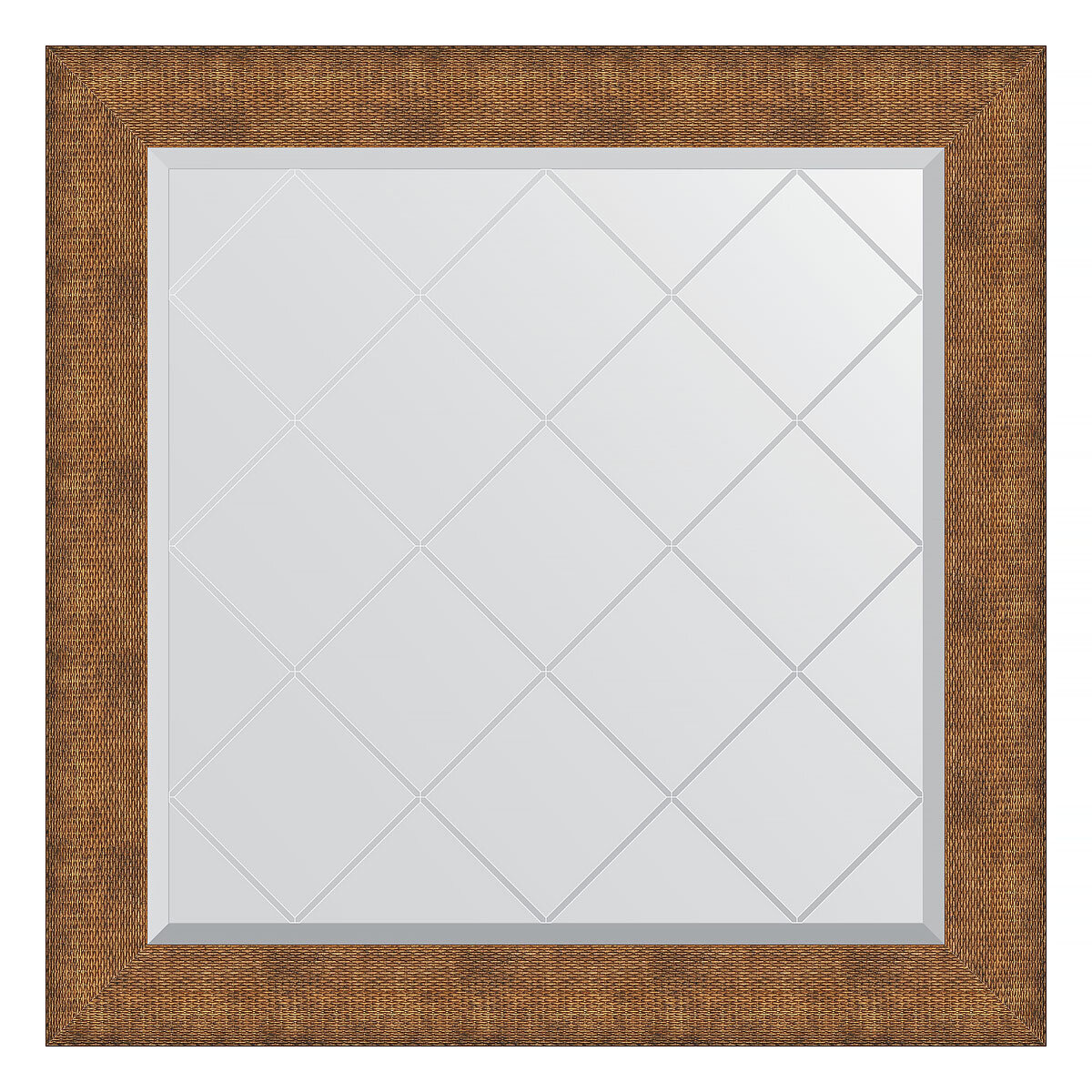 Зеркало настенное с гравировкой EVOFORM в багетной раме медная кольчуга 87х87 см для гостиной прихожей спальни и ванной комнаты BY 4560 Exclusive