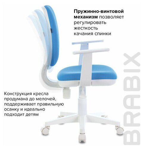 | Дополнительно | Детское кресло BRABIX "Fancy MG-201W" с сочетанием белой пластиковой основы и обивки яркого цвета. Конструкция кресла продумана до мелочей и максимально безопасна для ребенка., Пружинно-винтовой механизм качания спинки обеспечивает опору и поддержку, а также позволяет регулировать угол наклона. При помощи специального рычага можно отрегулировать высоту сидения., Крестовина кресла максимально увеличивает площадь основания и почти исключает возможность опрокидывания., Газлифт выдерживает и ребенка, и взрослого весом до 120 кг., Подлокотники и пятилучие - пластиковые белого цвета., Спинка и сиденье имеют плотную набивку, средней жесткости., Компактная модель, которая легко выдерживает нагрузку взрослого человека. |