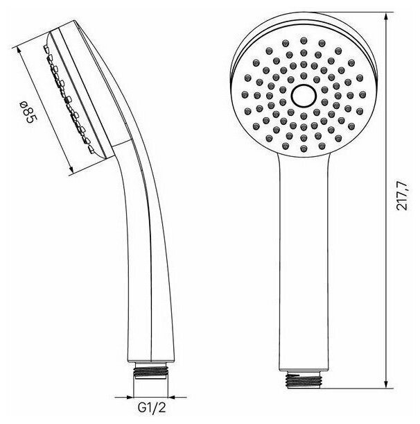Ручная лейка из ABS-пластика, диаметр 85 мм. Цвет серый/хром. Материал: ABS-пластик, форсунки из TPR (термопластичная резина). 1 режим . Упаковка - картонная коробка.
