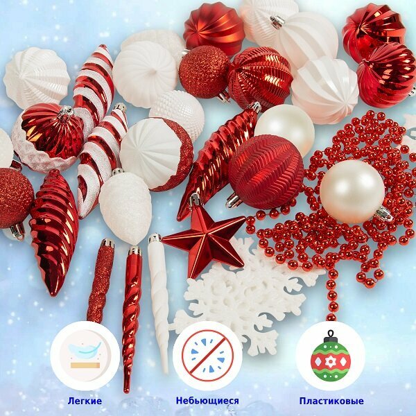 Новогодние елочные шары пластиковые легкие небьющиеся Winter Glade разного диаметра станут замечательным элементом декора в доме в период новогодних и рождественских праздников: Новый год, Рождество и Старый новый год. Украшение новогодней елки елочными игрушками, бусами, звездами, сосульками, шарами и шариками – обязательный элемент подготовки к празднованию Нового Года и Рождества. Наборы елочных шаров и других новогодних игрушек станут прекрасным вариантом для украшения вашей елки и рождественского интерьера квартиры, дачи или загородного дома. Набор включает в себя матовые, блестящие и с блестками елочные шары, которые будут отлично смотреться и на зеленой и на белой хвое. С Новым годом 2023!
