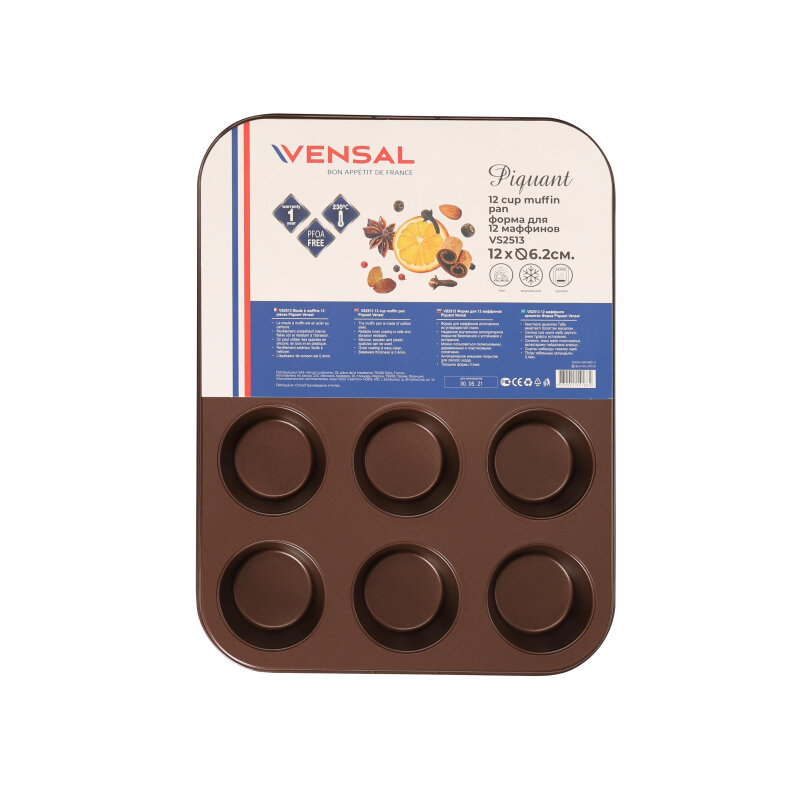 Форма для маффинов Vensal Форма Piquant для 12 маффинов из углеродистой стали 12х6,2 см VS2513