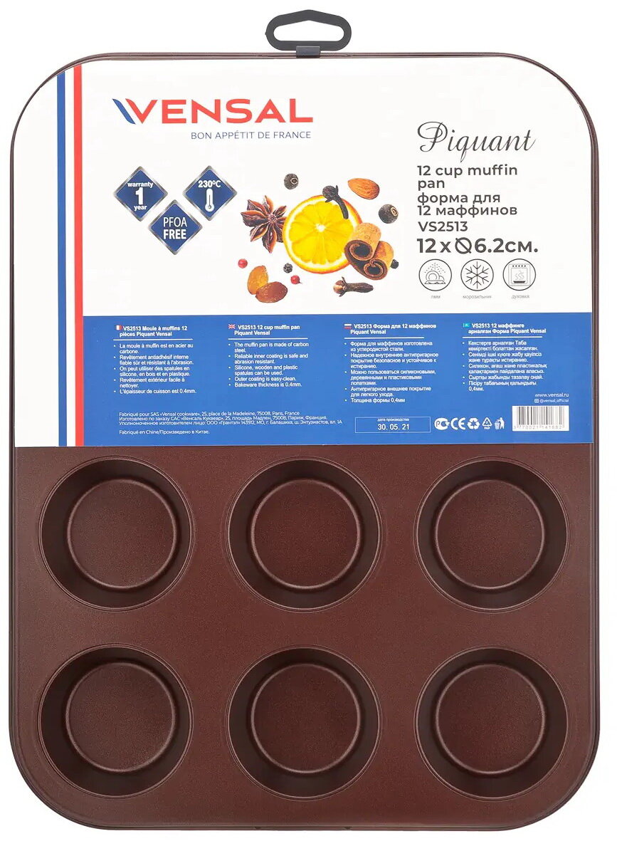 В Форме Vensal Piquant для 12 маффинов 12х6,2см из углеродистой стали VS2513 Вы сможете приготовить много кексов за один раз.