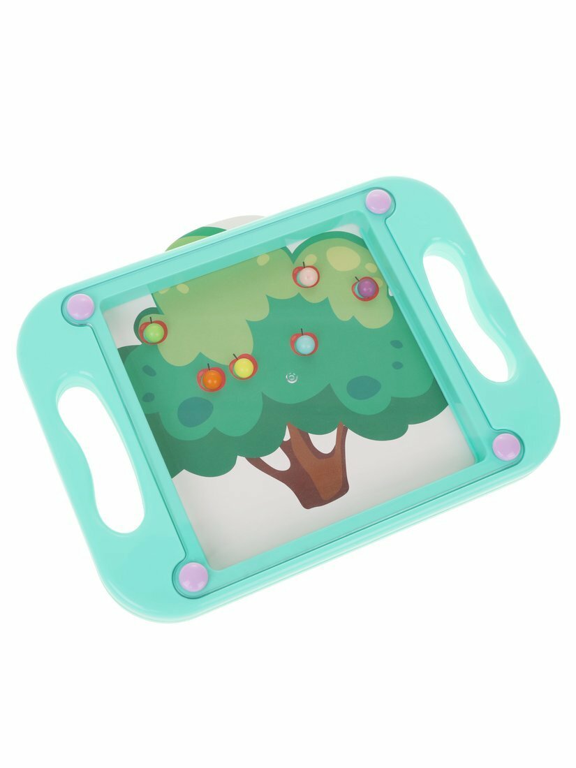 Игрушка представляет собой основу прямоугольной формы с двумя удобными ручками по бокам. Под прозрачным пластиком находится красочная картинка с углублениями - лунками круглой формы, а также 6 разноцветных шариков. Задача игрока - балансируя и наклоняя игрушку в разные стороны, загнать каждый шарик в лунку.