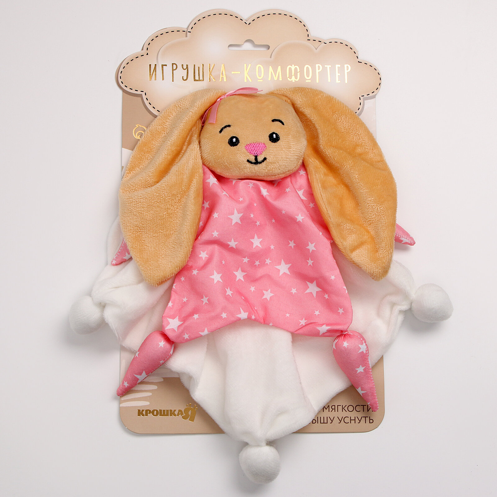 Комфортер — это специальная мягкая игрушка в виде небольшого одеяльца, которой укрывают малыша, чтобы он чувствовал себя уютно во время сна. Секрет в том, что ткань впитывает запах мамы при взаимодействии с предметом и создаёт ощущение, что близкий человек рядом. Положите крохе в кроватку эту милую вещицу, и процесс засыпания будет проходить проще. Такое изделие подойдёт ребёнку не только для крепкого сна, но и в качестве первой игрушки, так как оно не имеет твёрдых или острых деталей. Комфортер выполнен из плюшевой ткани, мягкой и приятной на ощупь.