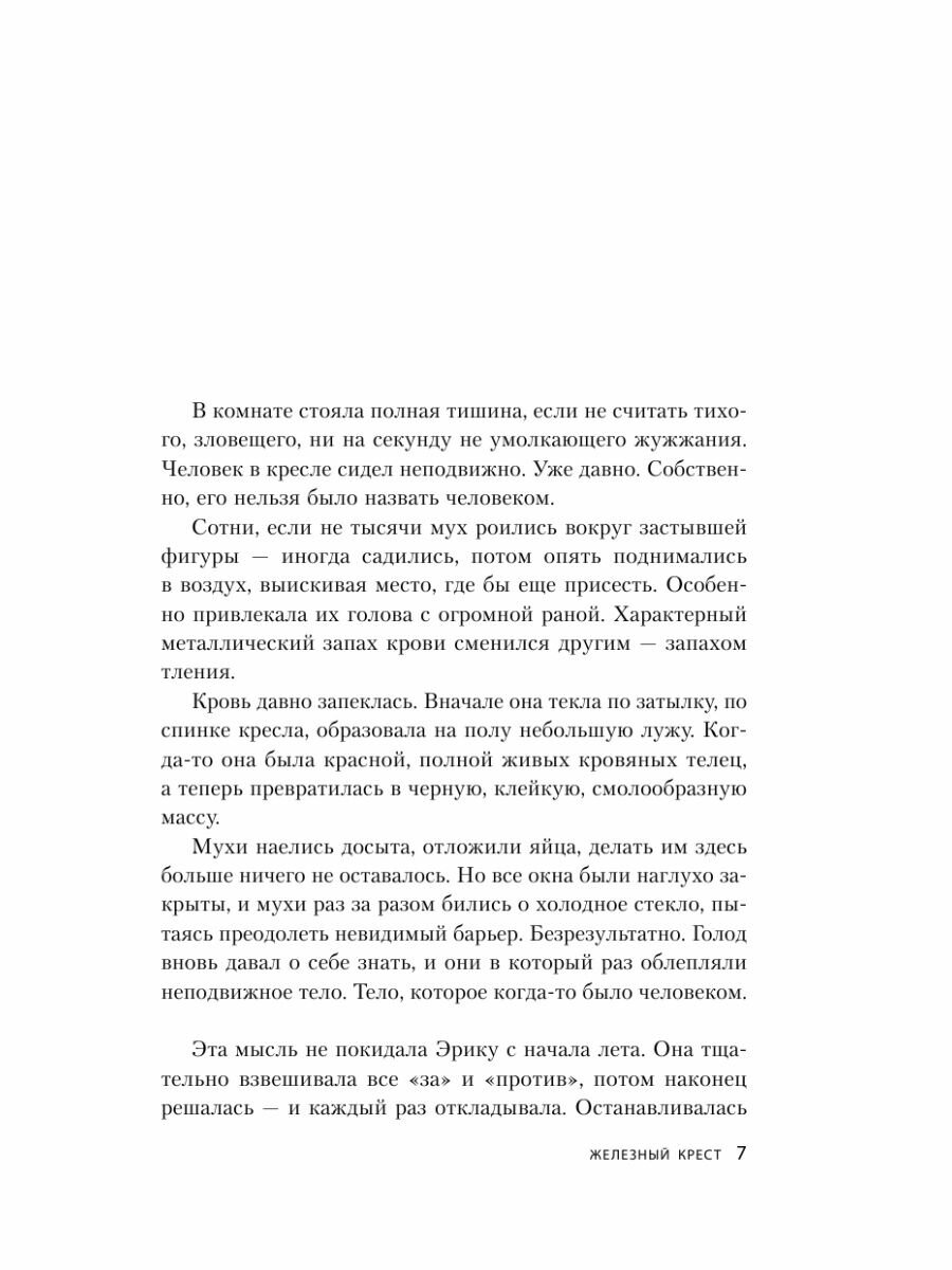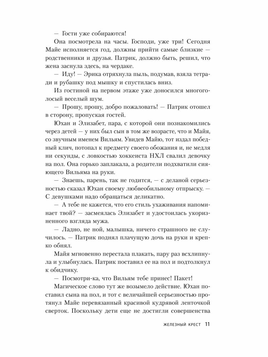 Предыдущая книга цикла заканчивается тем, что ГГ находит Железный крест в распашонке, запачканной кровью. Интрига заворожила.. Сразу покупаю книгу ЖЕЛЕЗНЫЙ КРЕСТ. Задумка очень неплохая, но я почему-то почти сразу догадалась, какая будет концовка.. Кто, кого,как и зачем... И с каждой книгой все больше и больше абсолютно ненужных подробностей о сестре ГГ, ее детях, любовниках, о бывших женах-мужьях. и т.д. Ни к чему это совсем. Не самый сильный детектив Лэкберг...