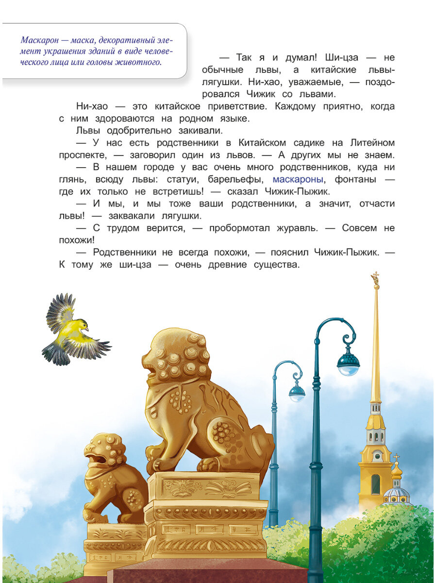 История вокруг каменных львов на Петровской набережной - ши-цза – была для нас вторичной (точно такой же пассаж про них мы уже читали в «Чижике-Пыжике и хранителях Петербурга», он просто повторяется. К слову, впервые встретила - и только в контексте Питера – такое название каменных львов. Обычно они в китайской культуре «ши-ши»).