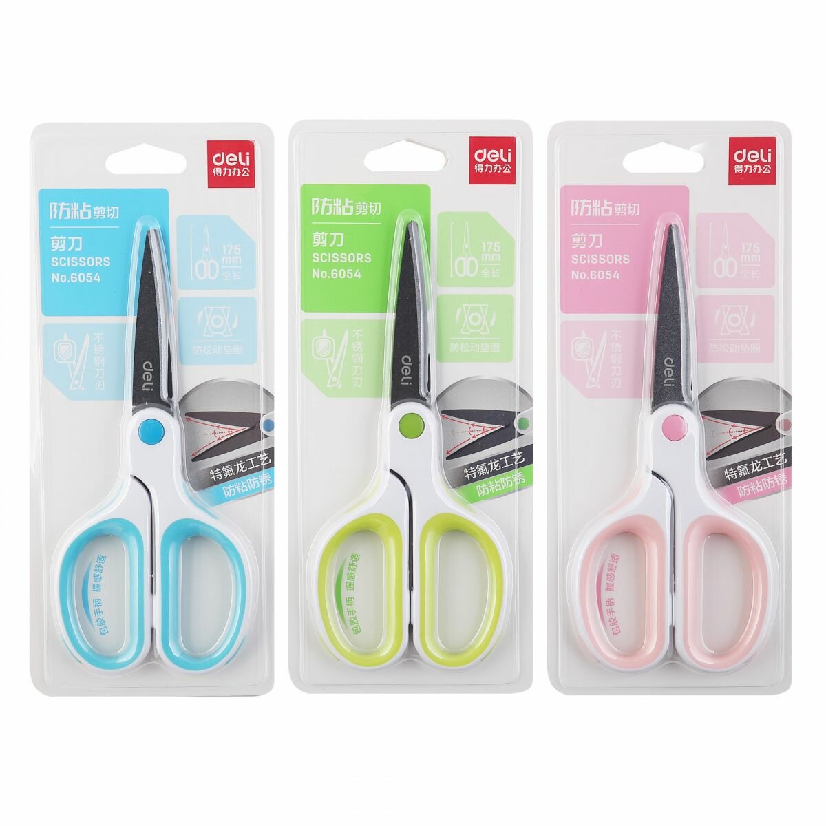 Ножницы офисные 175мм сталь ассорти6054 DELI 6054 Soft-touch Teflon Effortless