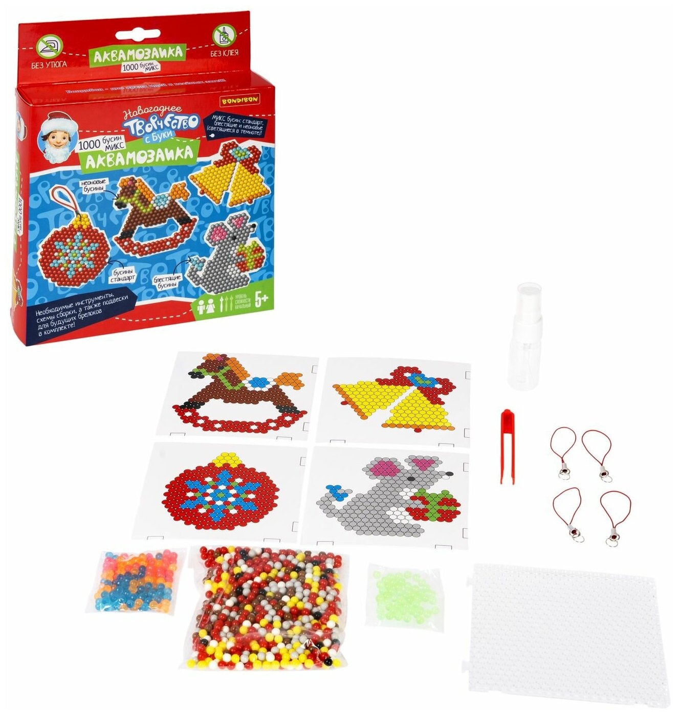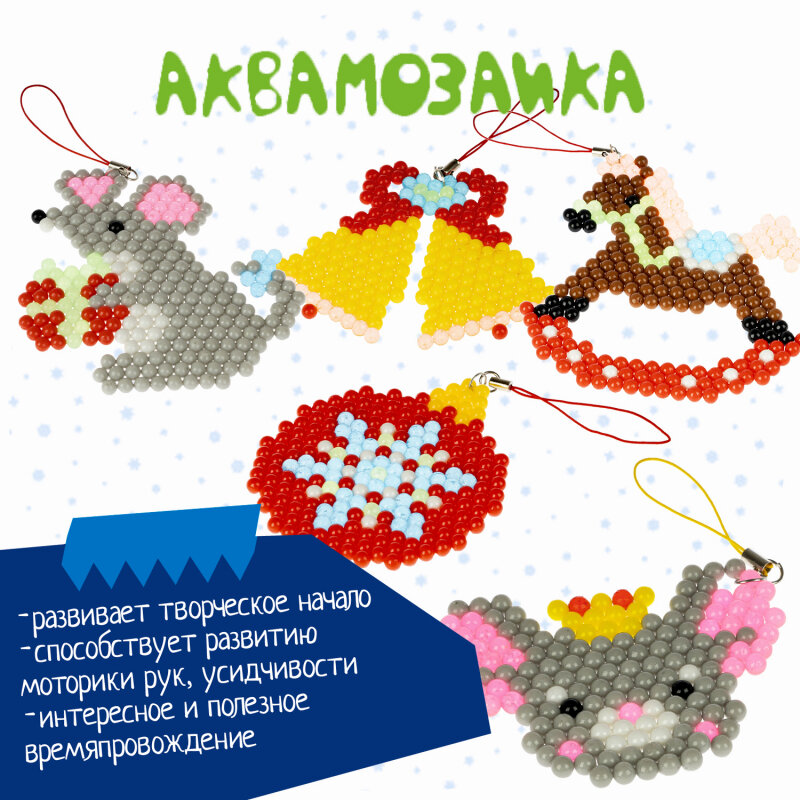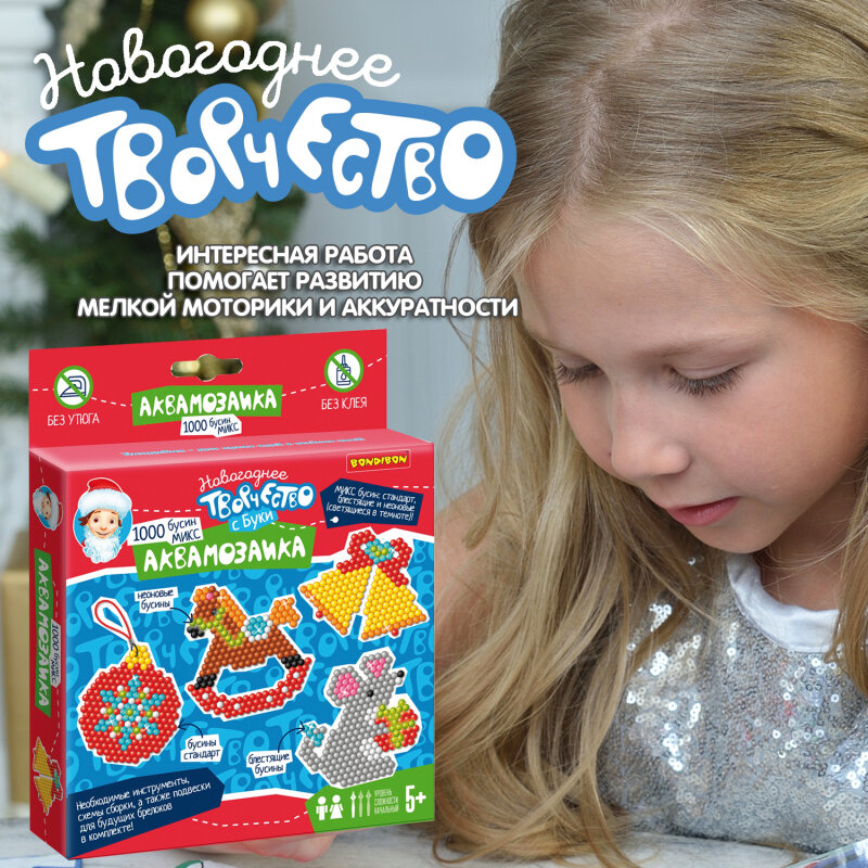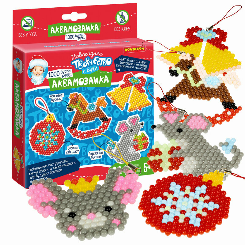 Новый год – время подарков! Присмотритесь к набору для творчества АКВАМОЗАИКА "НОВОГОДНЯЯ 1" 1000 блестящих и неоновых бусин, подвески Творчество с Буки Bondibon