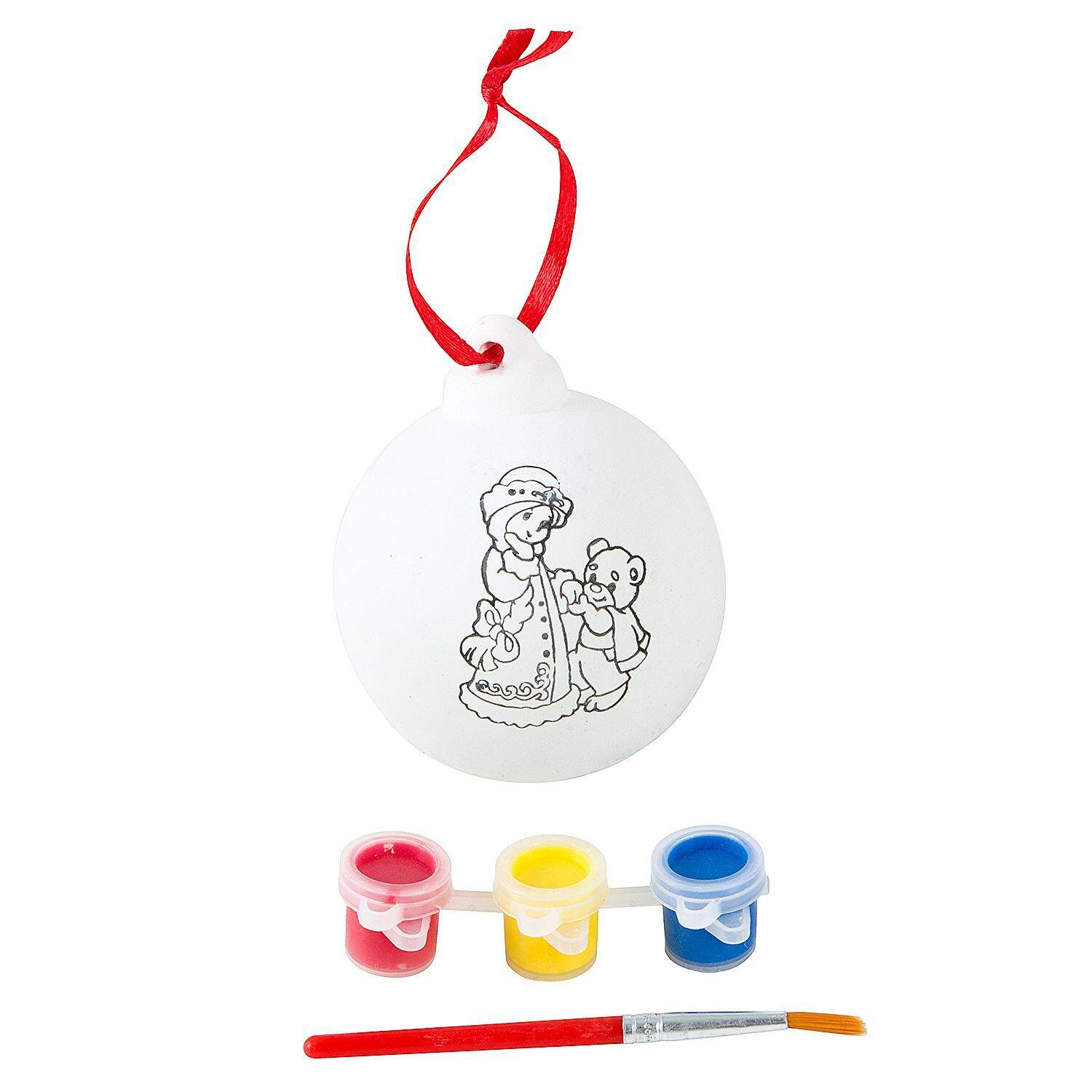 В наборе: шар для раскрашивания, краски (3 цвета), кисть.