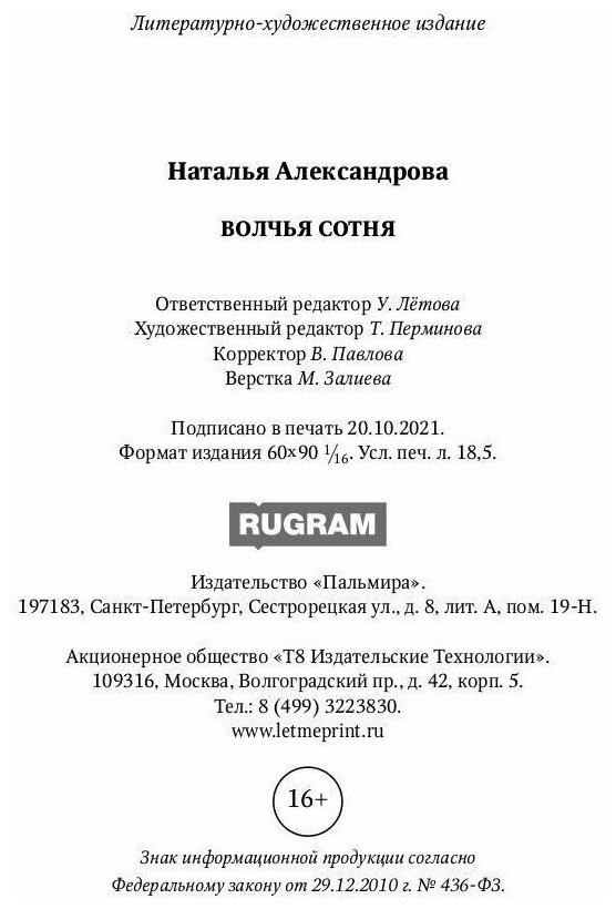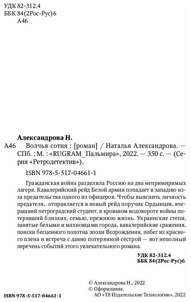 Книга: Волчья сотня (Александрова Наталья Николаевна); Пальмира, 2022
