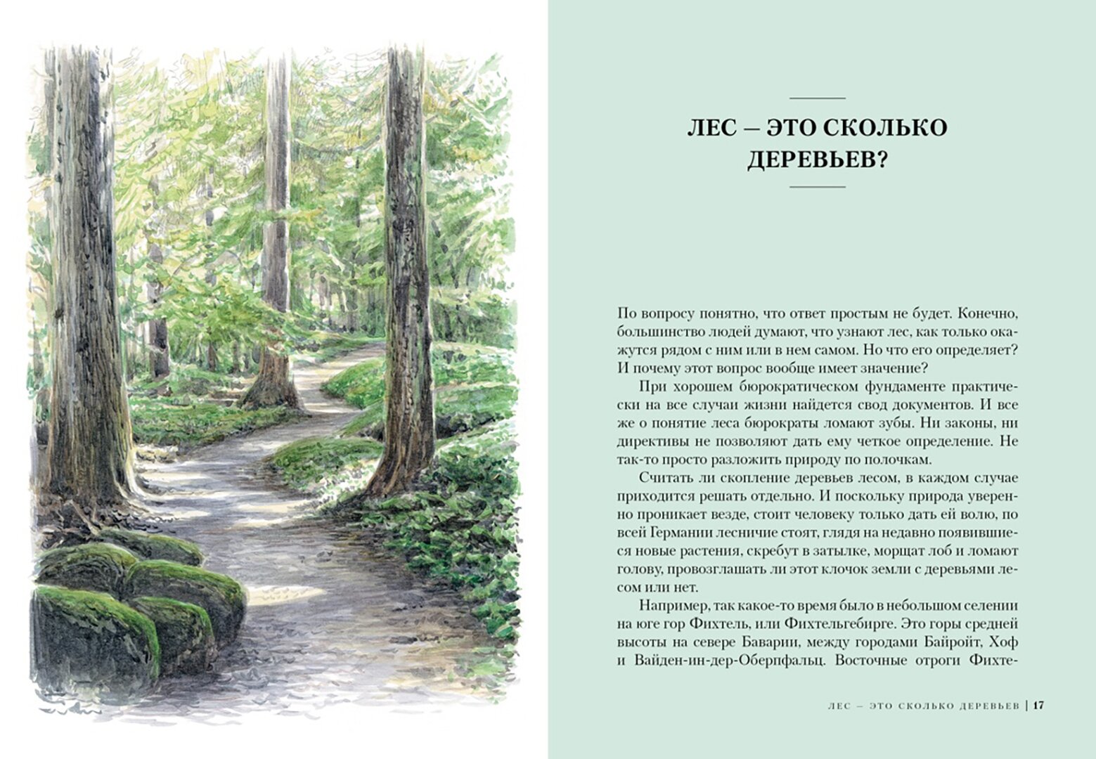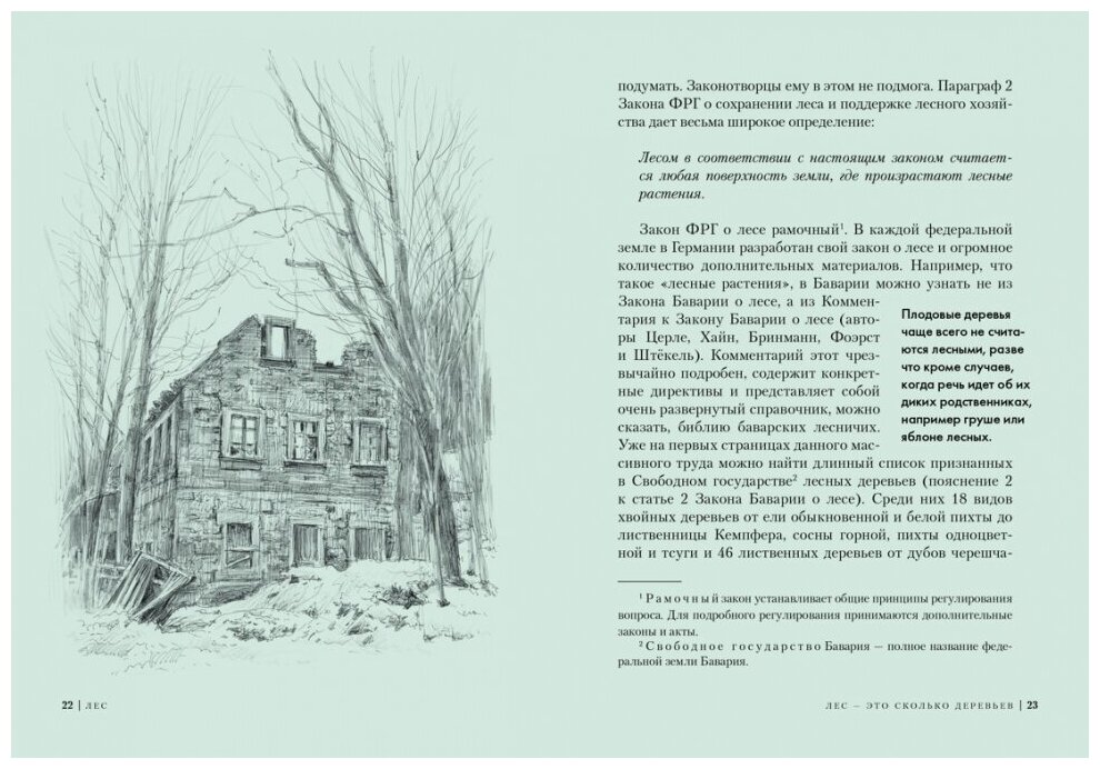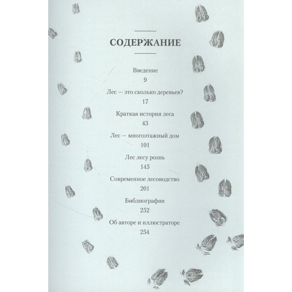 За простым названием скрывается достаточно интересный рассказ о том, что же такое лес и что можно назвать лесом. Какие особенности имеет каждый вид леса, какие бывают виды. Как человек повлиял на него и чем это чревато. Поднимаются важные вопросы о том, как на лес влияют его жители, зачем в лесу сухостой, какая связь между видом леса, почвой и вредителями, какой вред могут принести животные и как человек может помочь лесу. Хотя в книге идёт рассказ о Германии, она не становится менее полезной и интересной.