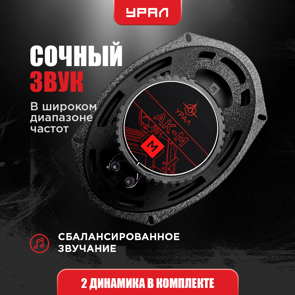 Автомобильные колонки Ural АК-М М, максимальная мощность 280 Вт, размер динамика 15x23 см (6x9 дюйм.), коаксиальные, однополосные, чувствительность 92дБ, импеданс 4Ом (УРАЛ АК-М М)