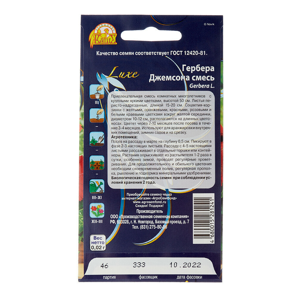 На сегодняшний день товар «Семена гербера джемсона смесь 002 г Без бренда» можно купить с кешбеком в 1 магазине: Яндекс.Маркет