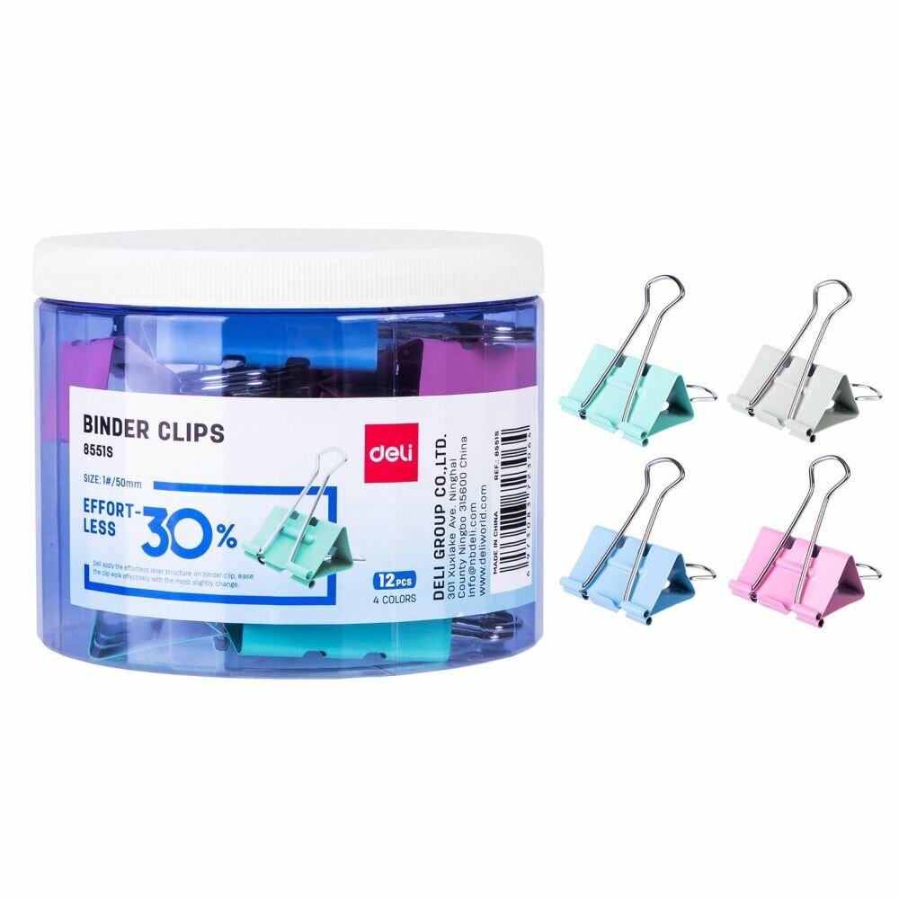 Зажимы металл 50мм ассорти (упак.:12шт)E8551S DELI