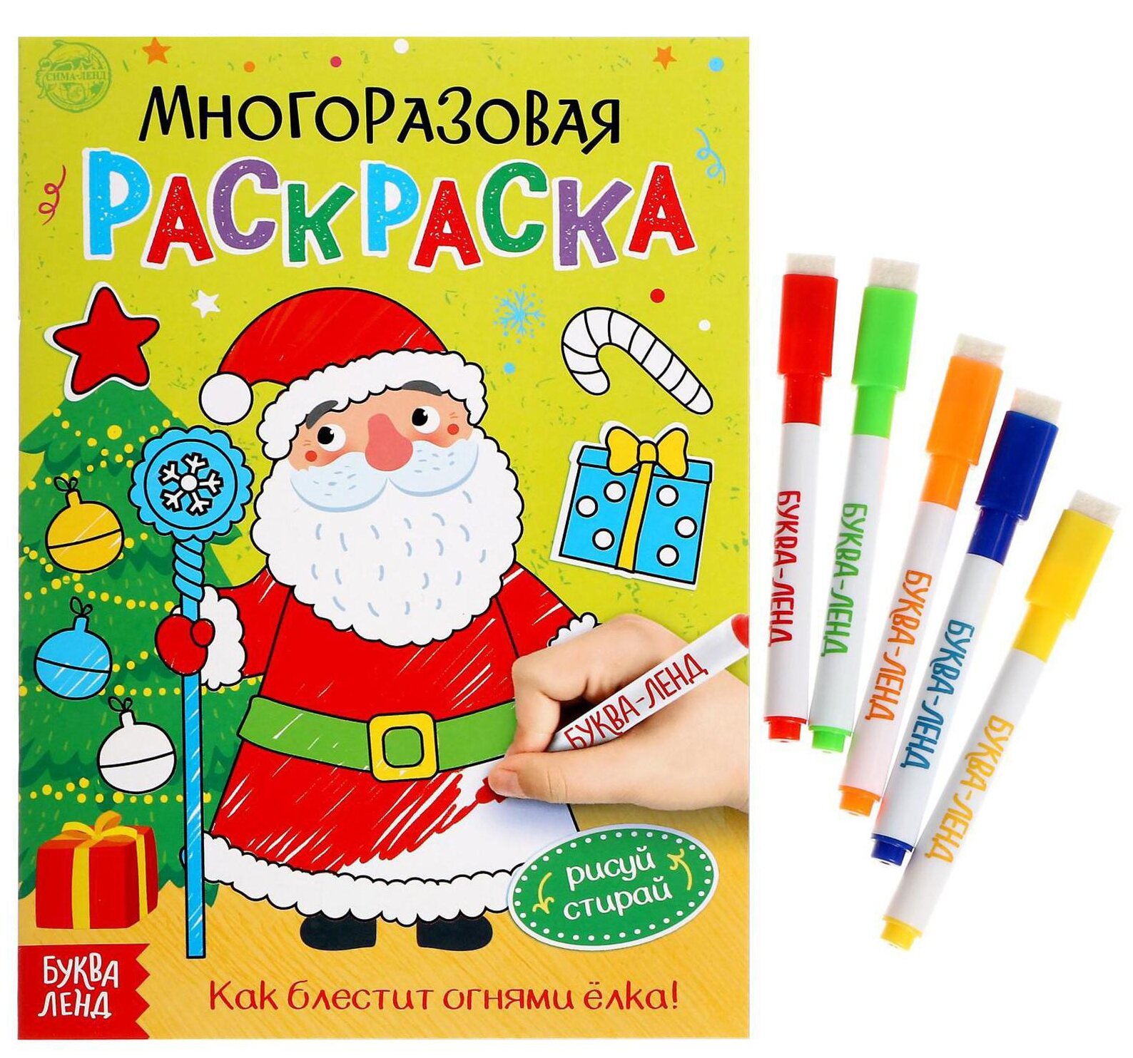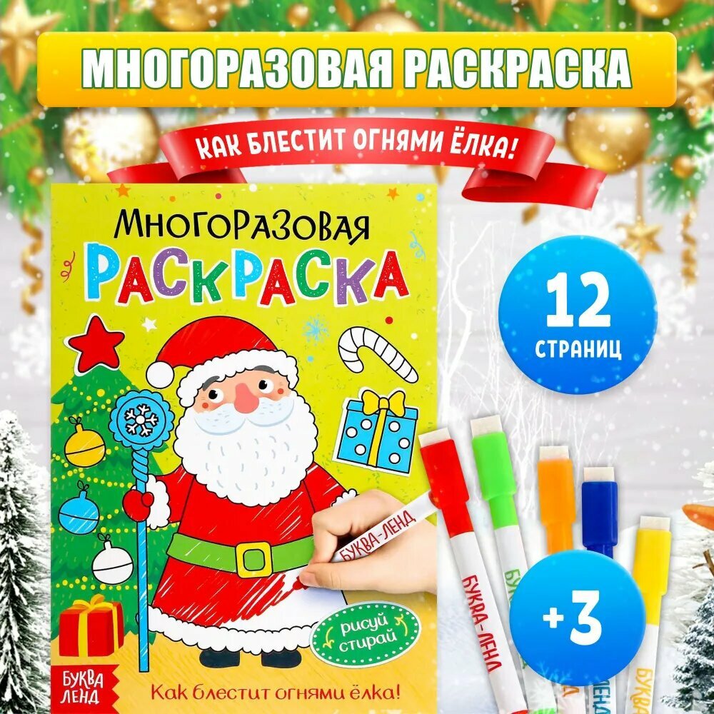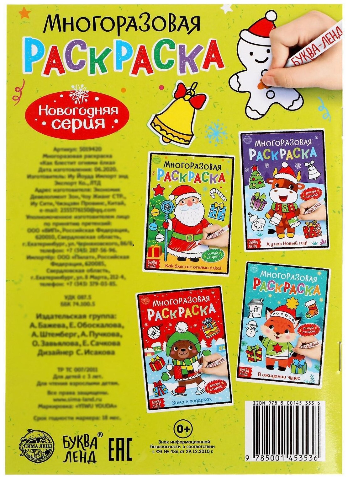 Многоразовая раскраска «Как блестит огнями ёлка!»; Буква-ленд, 2021
