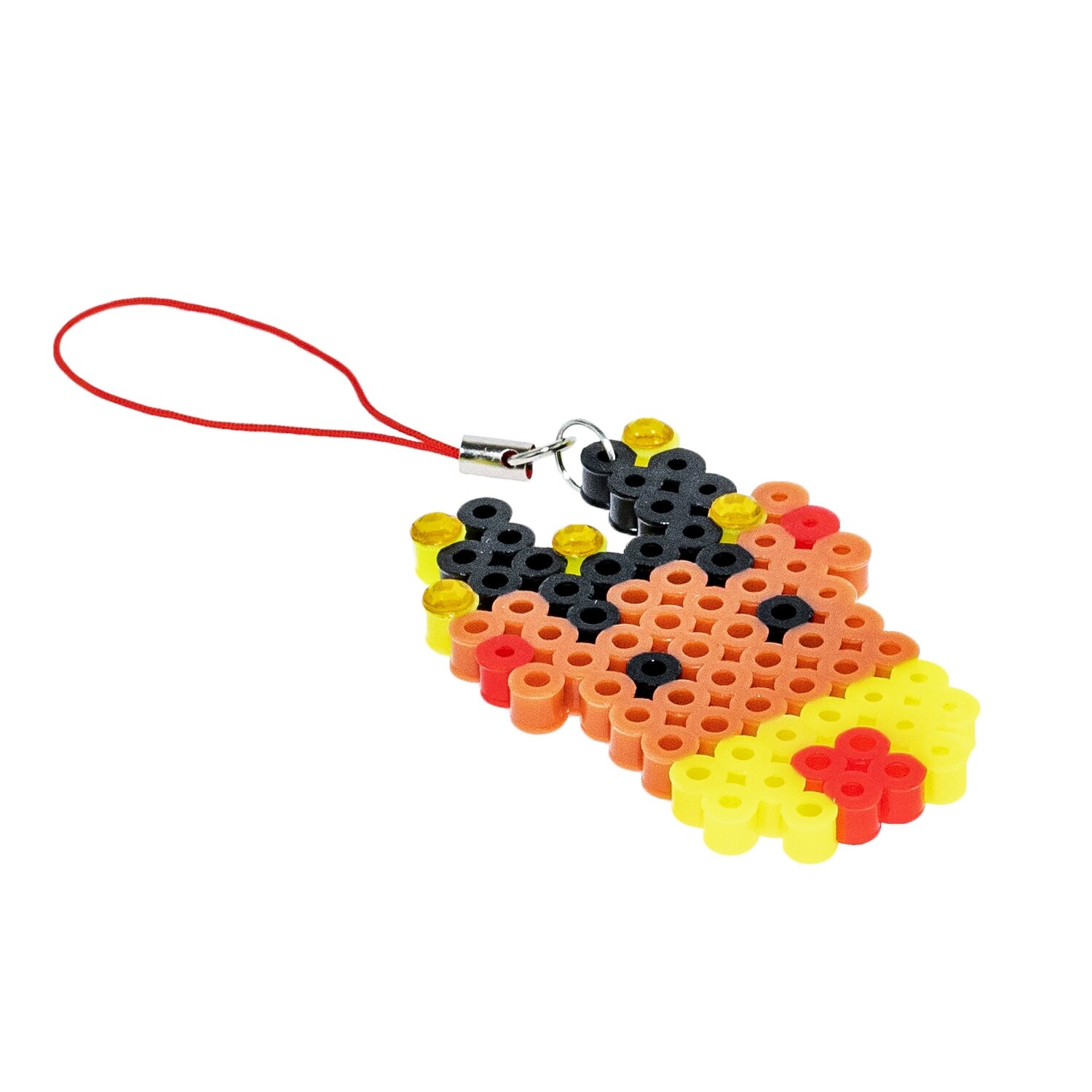 Помещаете схему под планшет и выкладываете по ней бусины. Проглаживаете все через кальку, даете изображению остыть и аккуратно снимаете фигурку с планшета. Прикрепляете подвеску и игрушка готова!