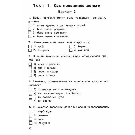 В пособии представлены контрольно-измерительные материалы по финансовой грамотности для 4 класса. Они содержат разнообразные задания для текущего и итогового контроля по изучаемому курсу. Материал расположен в соответствии с порядком изложения тем в учебнике «Финансовая грамотность. 4 класс» Г.Д. Гловели, Е.Е. Гоппе (М.: ВАКО). В конце пособия даны ответы ко всем тестам.