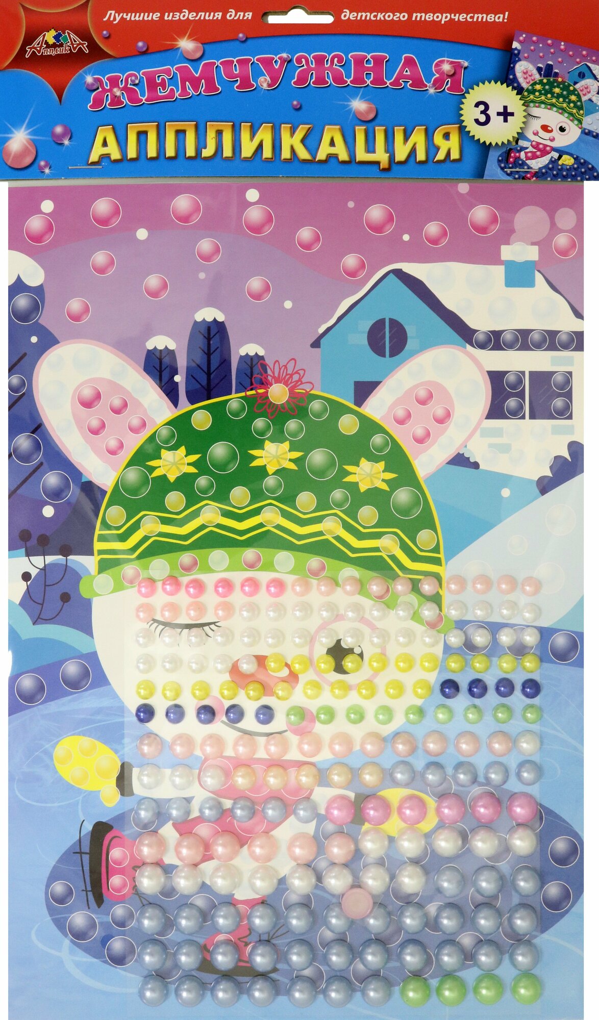 Набор для детского творчества "Жемчужная аппликация" понравится детям от 3-х лет. На цветной картонной основе цветом и контуром показаны места, куда необходимо приклеить перламутровые пластмассовые полужемчужены разного цвета и диаметра. Элементы имеют клеевой слой, поэтому вы обойдетесь без клея. В результате получится яркая картинка. Набор включает цветную картонную основу размером 21 х 29,5 см, цветные пластмассовые полусферы диаметром 6, 10, 12 мм. Занятия с помощью этого набора развивают мелкую моторику, внимание, аккуратность. Все необходимые детали для поделки входят в состав набора.