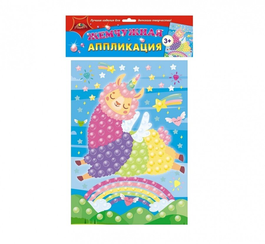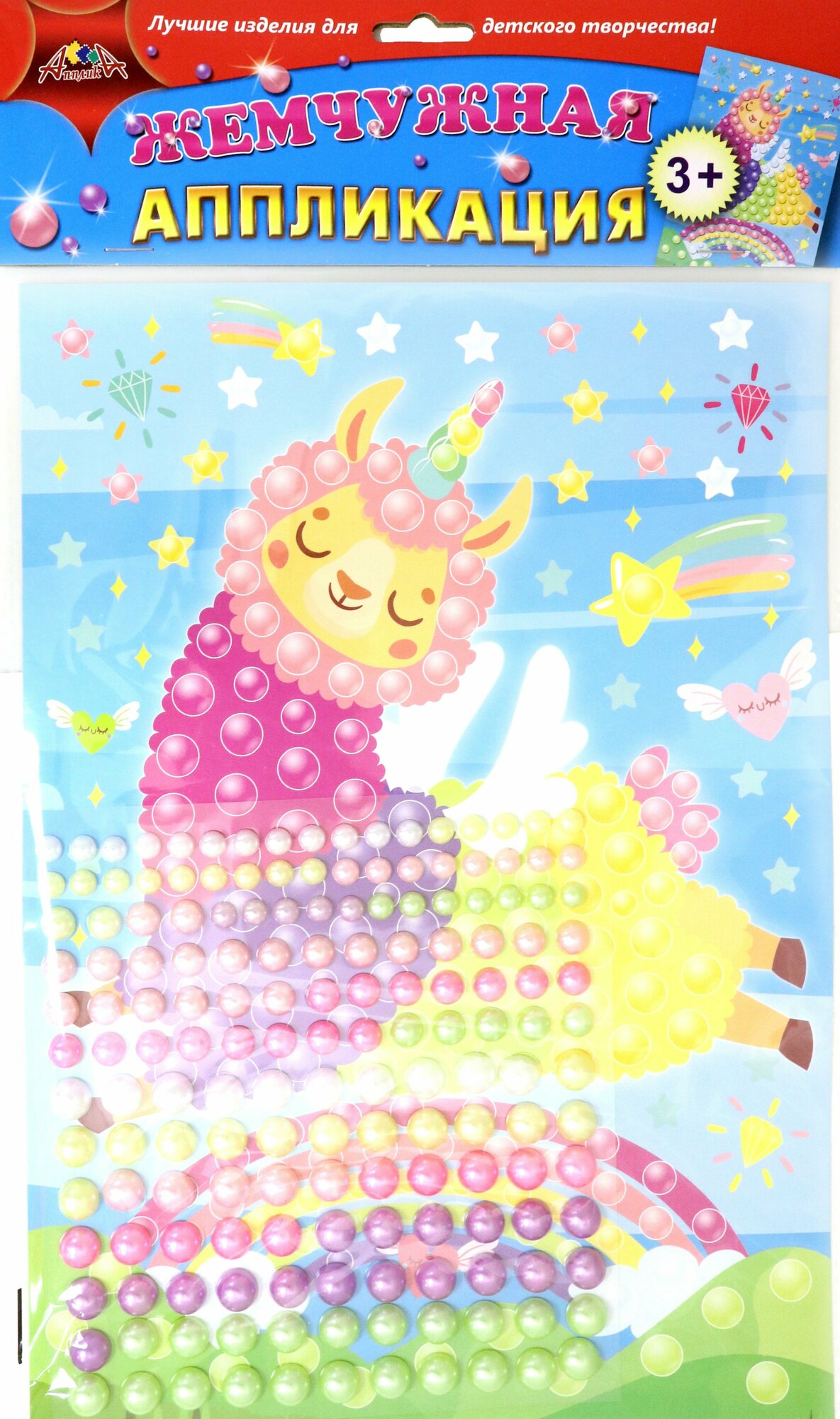 Аппликация жемчужная Разноцветная ламаС3277-16 "Разноцветная лама", картонная основа 21х29,5 см