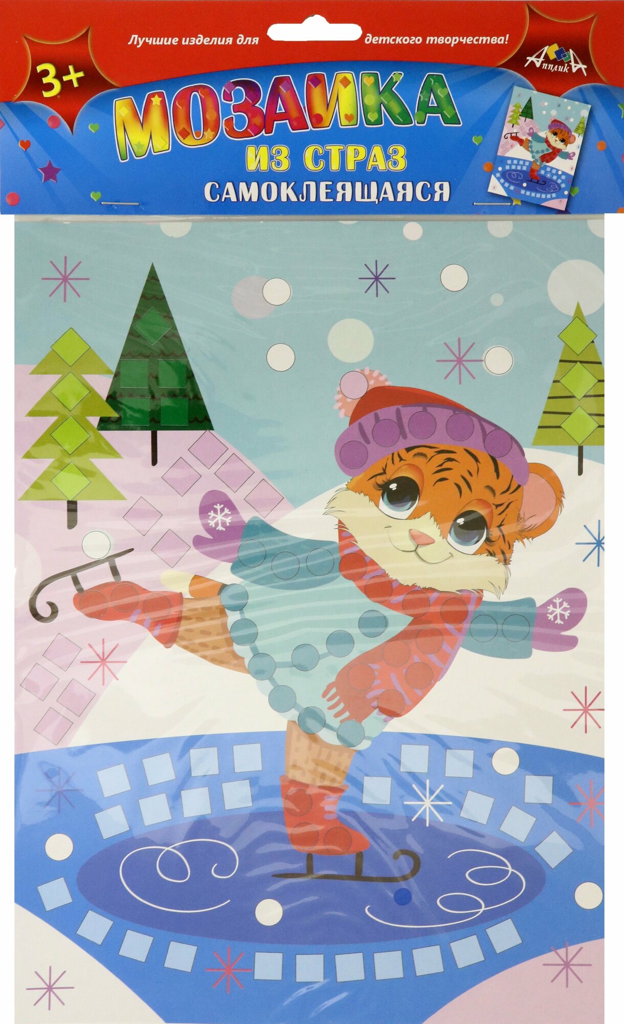 Мозаика из страз самокл.Тигренок на конькС3081-18 АппликА