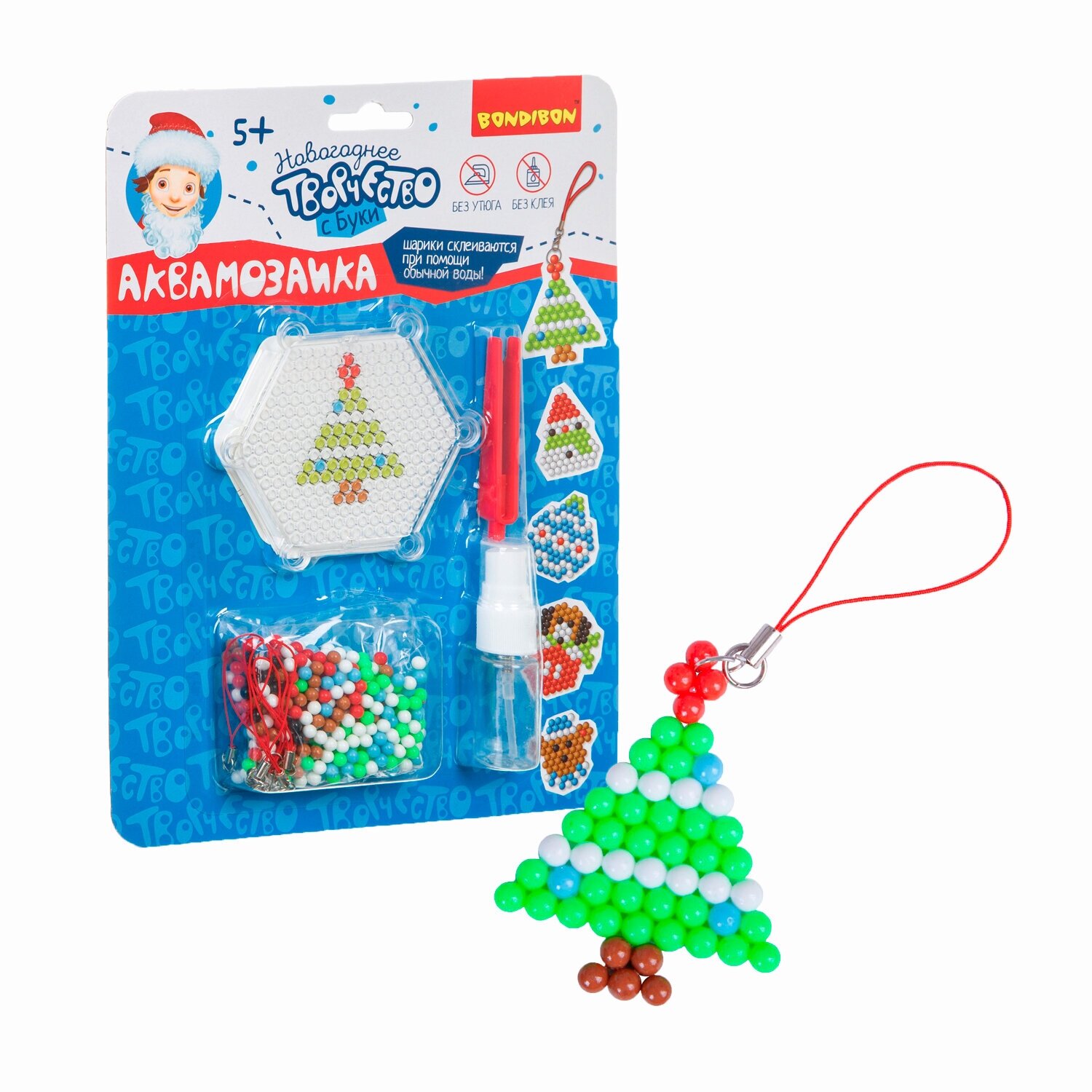 Новогодняя аквамозаика - волшебный творческий набор! Разложите цветные шарики по трафарету, слегка смочите их водой, дайте им высохнуть и готовая фигурка из ярких бусин застынет! Теперь ребёнок сам сможет создавать себе игрушки в виде животных, зданий, автомобилей, любимых кино или сказочных героев. А самые любимые поделки можно носить с собой как брелок!