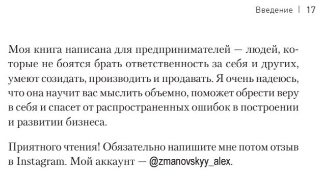 Книг на тему предпринимательства действительно не мало, и каждая похожа на предыдущую, однако нельзя отрицать то, что каждый автор книги (мы говорим о хороших книгах) вкладывает в свою книгу свой личный опыт, и потому вкладывает нечто новое. Бизнес-куб - новая модель-метафора в предпринимательстве, она олицетворяет стойкость и простоту, как сама фигура, так же каждая ось куба отвечает за отдельную составляющую успешной компании: лидерство, технология и команда. И успех компании зависит от трех осей в равных пропорциях. После объяснения своего выбора методики, автор переходит к глубокой проработке всех составляющих вашего пути к предпринимательству, и первый, конечно, мышление. С самого начала настоящего лидера определяет его мышление, без чего вы просто не сможете взять на себя такую ответственность. Оставлю главы, рассказывающие про те самые три оси, и перейду к 5 главе. В ней автор рассказывает о том, как масштабировать бизнес и поднять свою планку, избежать многих ошибках и подводных камней, и рассказывает об этом на своем опыте. А это значит, что ценный опыт будет полезен как начинающим, так и тем, кто не знает, как "выйти дальше".