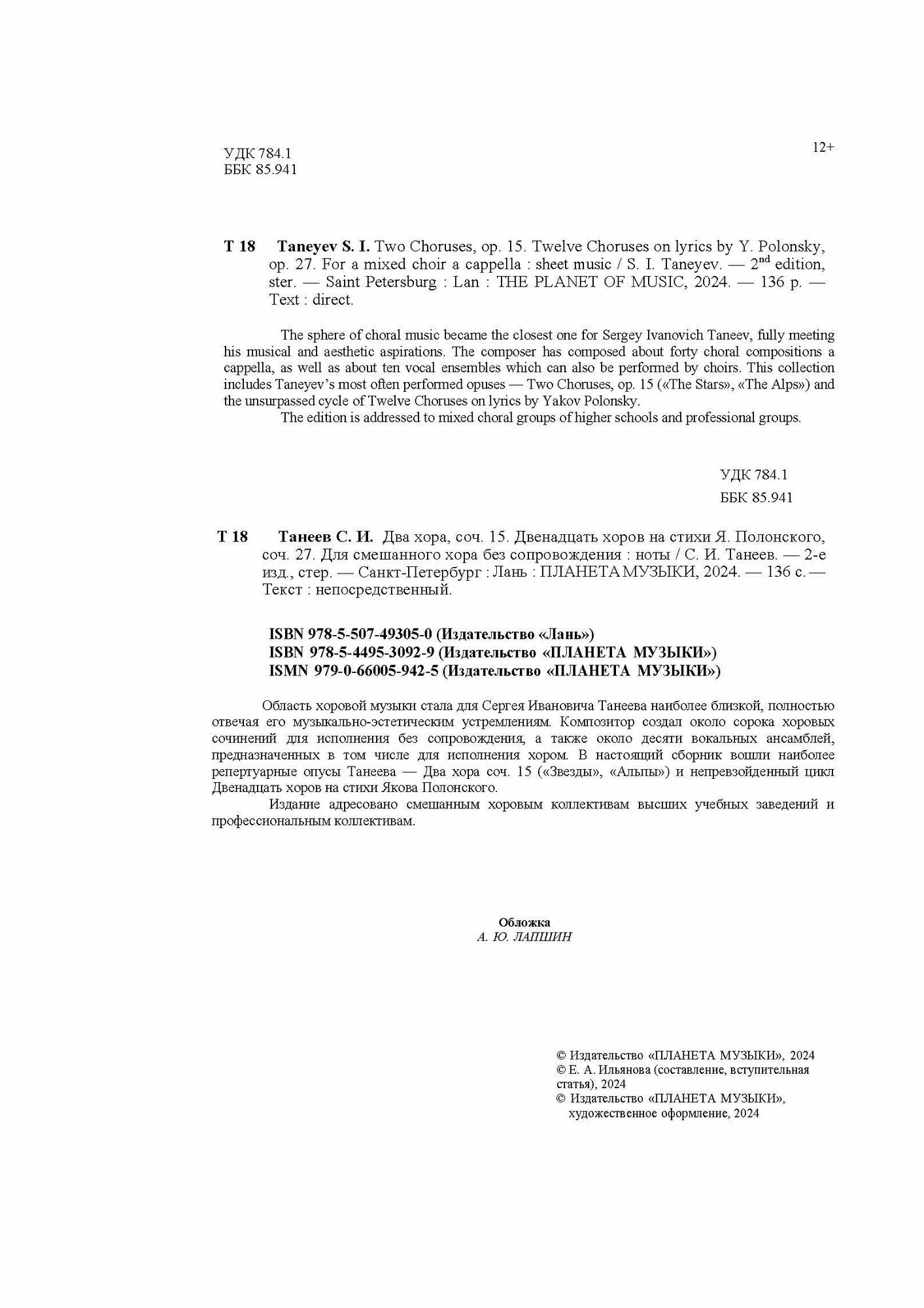 Два хора соч. 15. Двенадцать хоров на стихи Я. Полонского соч. 27. Для смешанного хора без сопров. (Танеев Сергей Иванович); Планета музыки, 2022