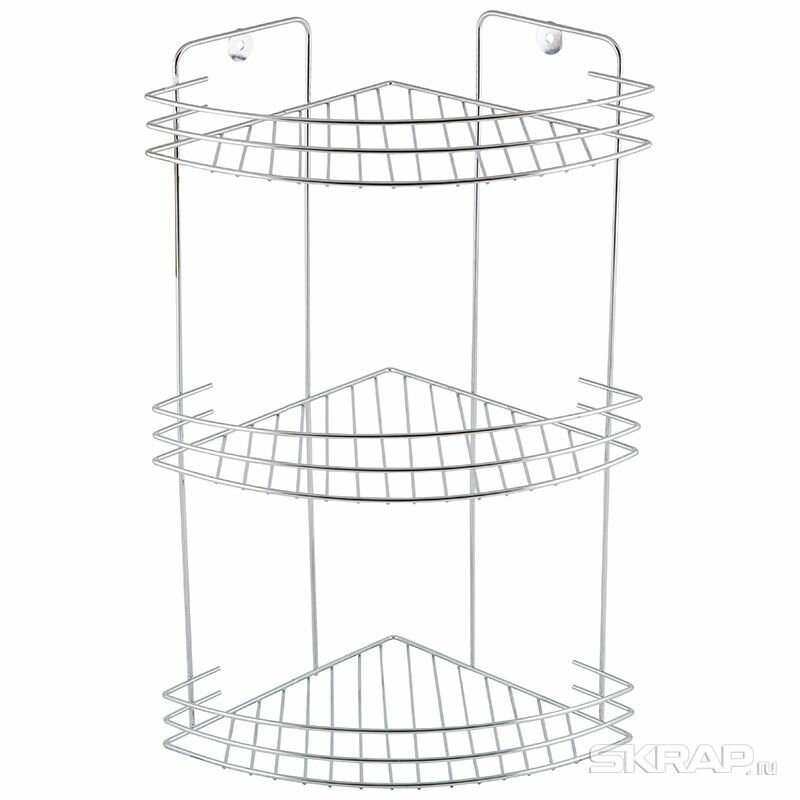 Полка выполнена из высококачественного хромированного металла и предназначена для хранения вещей в ванной комнате, состоит из 3-х ярусов одинакового размера с бортиком по краю, крепится к стене с помощью шурупов (входят в комплект).