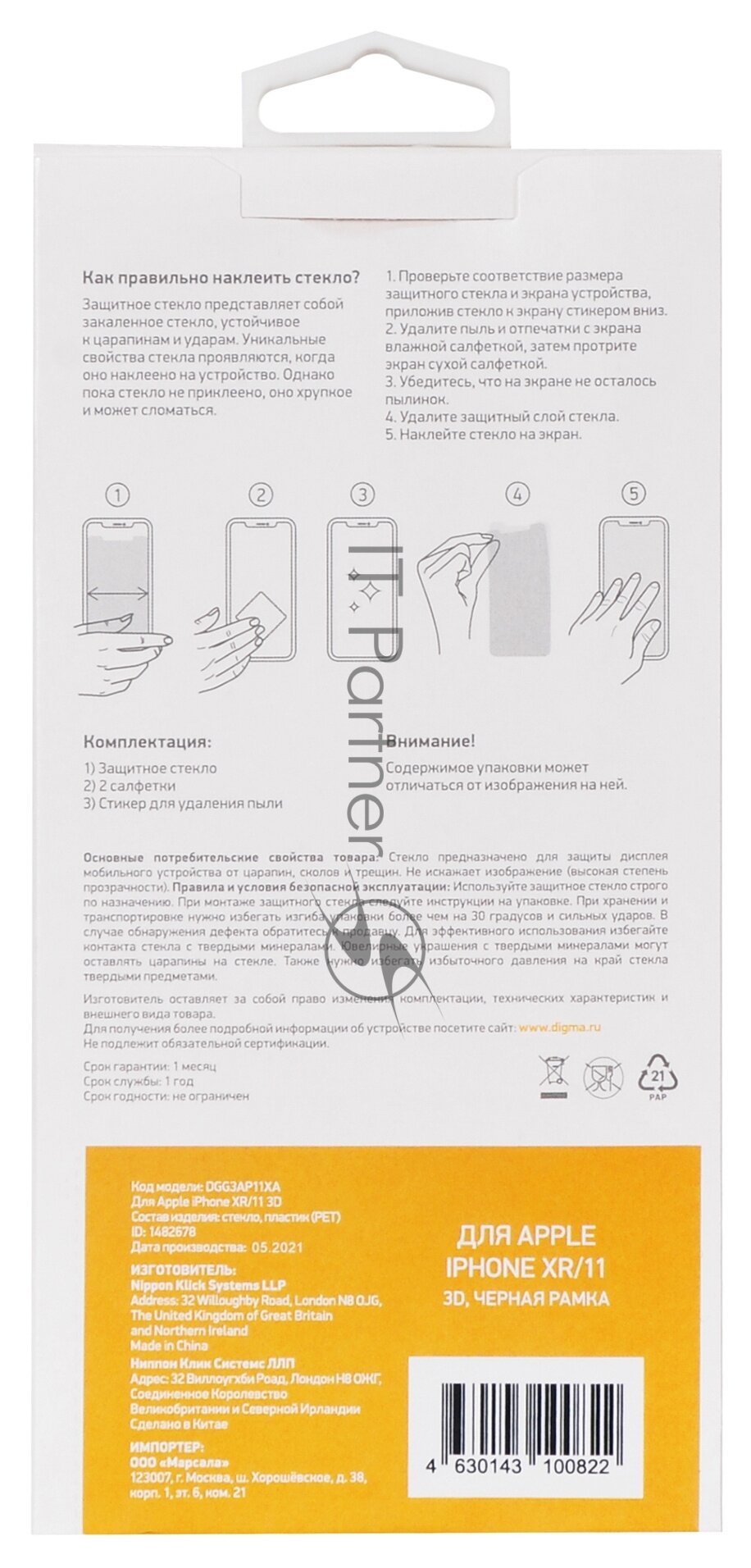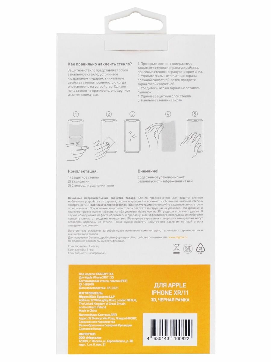 Защитное стекло Digma для Apple iPhone XR/11 3D (DGG3AP11XA)