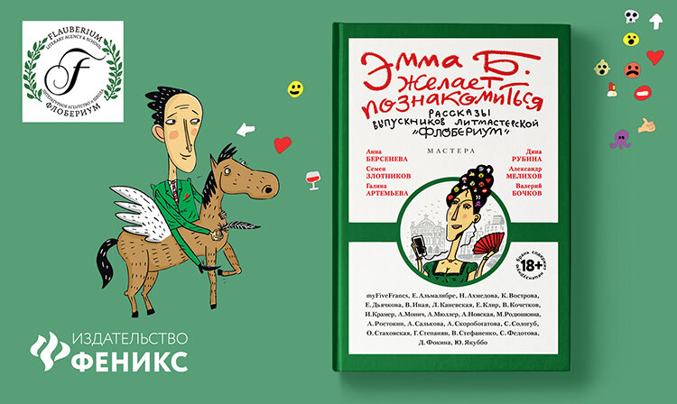 Вы удивитесь, но Эмма Б. - это не современная барышня, а госпожа Эмма Бовари, героиня знаменитого романа Флобера. И желает она познакомиться не с кавалерами, чтобы скрасить свое одиночество и отрешиться от разочарований супружества, а… с персонажами современных рассказов, созданных писателями, только начинающими свой творческий путь, - выпускниками литературной мастерской "Флобериум". Эмма Б. протягивает руку, чтобы поприветствовать новых героев, которые решают вполне традиционные проблемы: супружества и материнства, любви и веры, творчества и игры, юности и зрелости, рождения и смерти. Но решают их на современном материале. Разве могла представить Эмма Б. свадьбу в эпидемию коронавируса, военные сражения косплееров, убежище для пострадавших от абьюза?