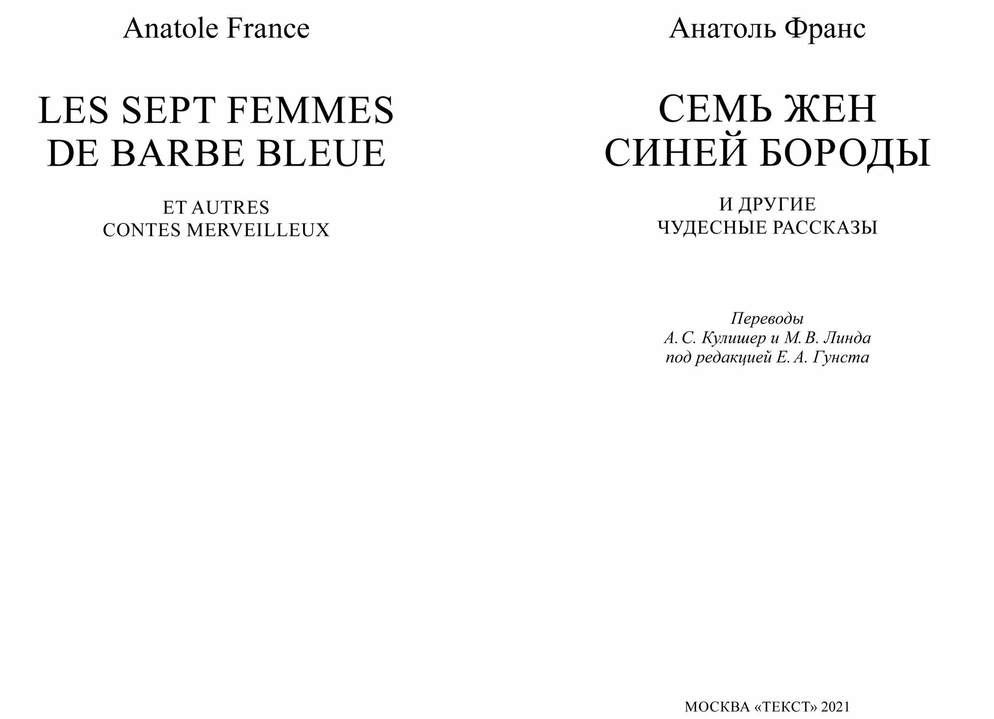 Семь жен Синей Бороды и другие чудесные рассказы (Франс Анатоль); Текст, 2021