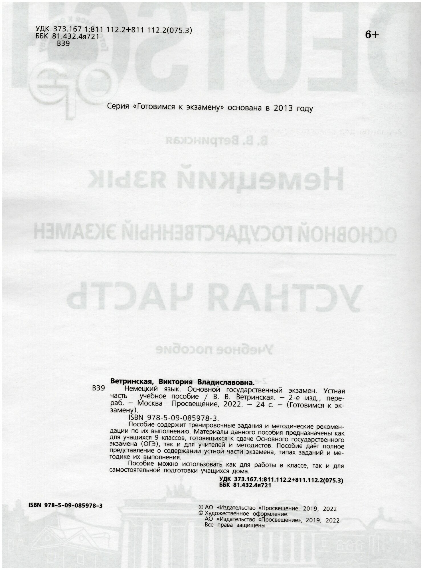 Немецкий язык 9 класс Основной государственный экзамен Устная часть Учебное пособие (Виктория Владиславовна Ветринская); Просвещение, 2022